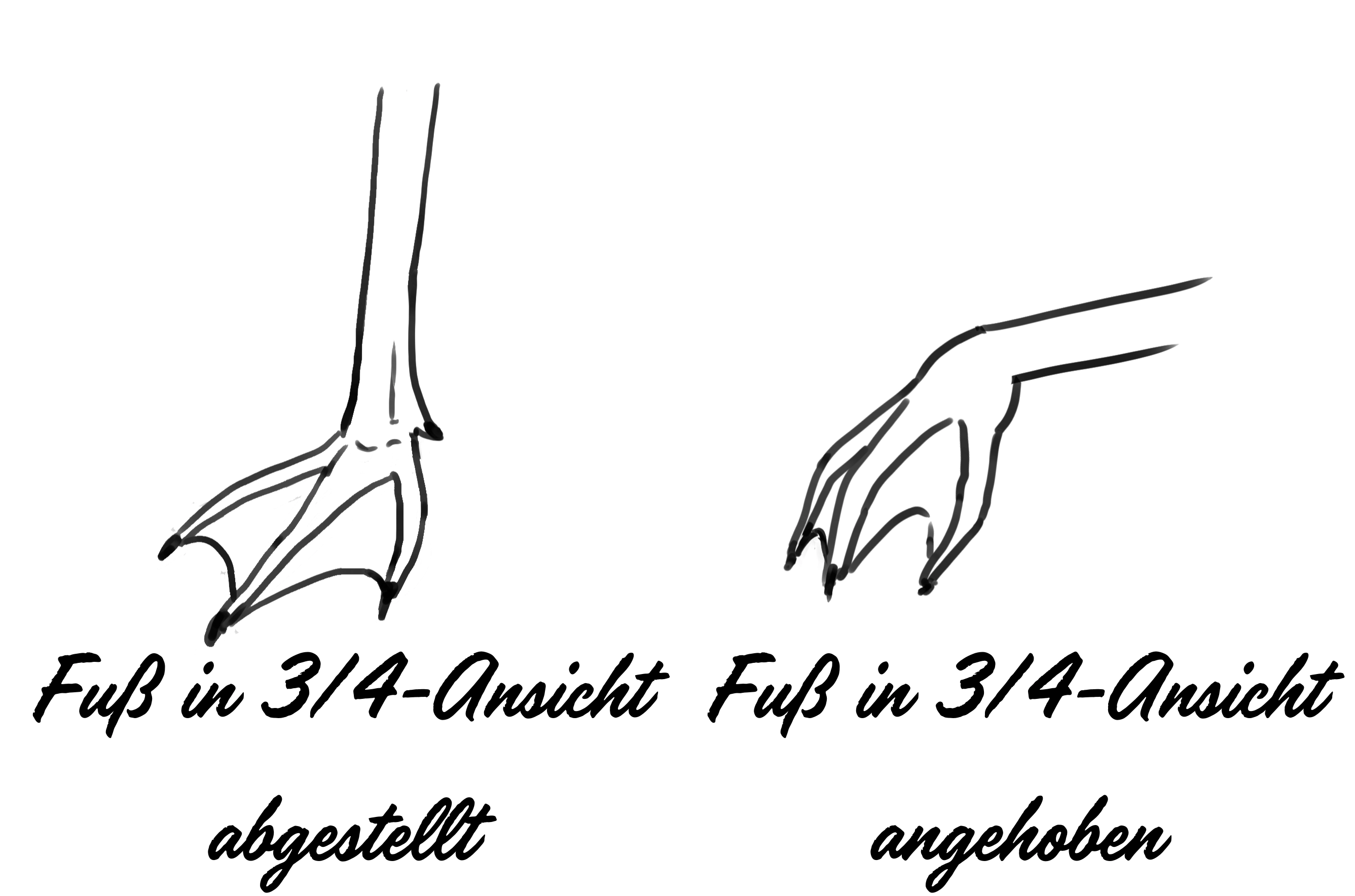Wird der Fuß angehoben und gefaltet, lässt sich die gerundete Gelenkstruktur gut beobachten. Jeder Zeh besteht aus mehreren Gliedern (Phalangen). Beim Falten legen sich die Schwimmhäute zusammen, was den Eindruck erwecken kann, dass die Zehen breiter oder dicker erscheinen.