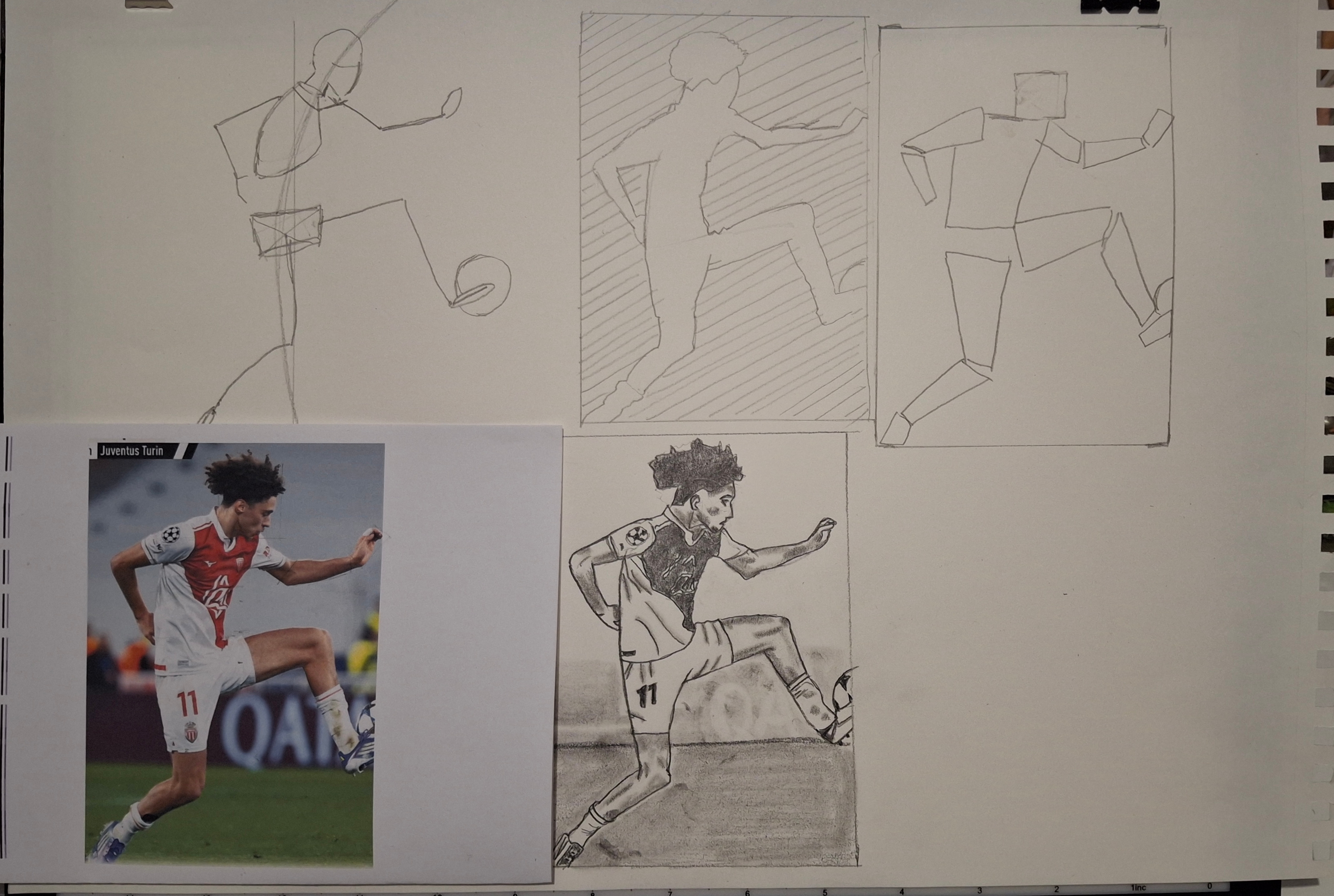 Merci d'avoir partagé les modèles, voici la correction de ton exercice : comme tu peux le voir, tu as fait une bonne interprétation. Les proportions sont très proches et les poses de tes esquisses sont également correctes.