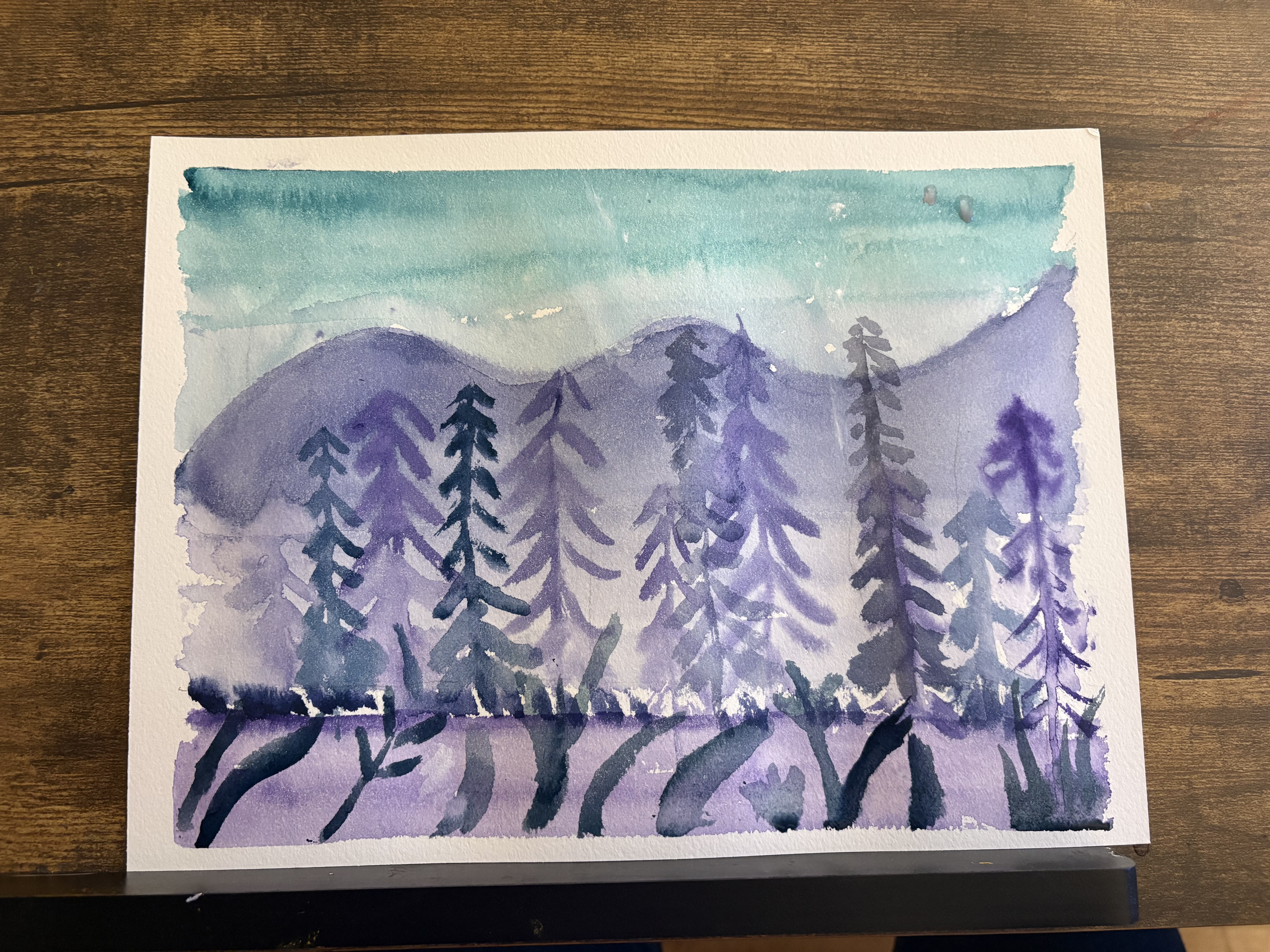 Très bien ! Tu as bien respecté le modèle en appliquant correctement les différents tons. Cependant, pour que tes traits soient plus définis, attends quelques secondes entre chaque couche pour qu'elles sèchent bien. Ainsi, tu obtiendras une belle superposition sans que les couleurs ne fusionnent entre elles.