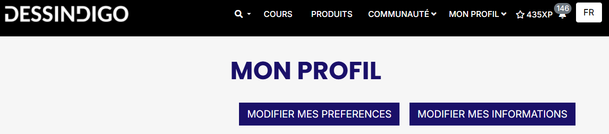 Pour répondre à ta question, voici la marche à suivre : dans la barre supérieure, tu devrais trouver une option appelée "Mon Profil" ; là, tu vas cliquer sur la première option, c'est-à-dire ton nom d'utilisateur. Une fois à l'intérieur, tu trouveras deux options, dont "Modifier mes informations". J'espère que cela te sera utile.