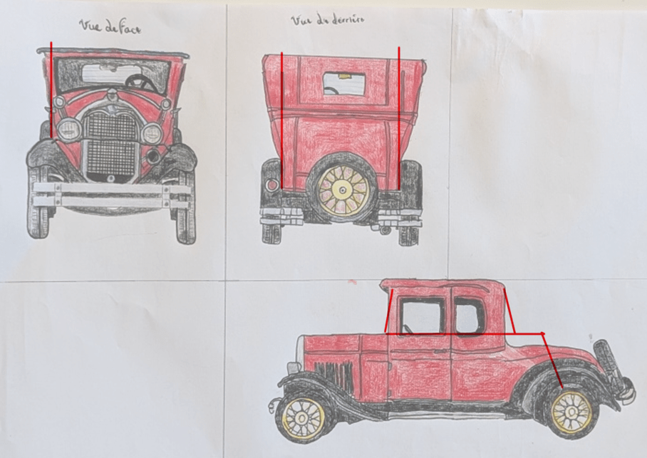 Ton exercice est très soigné et tu as fait de très belles lignes ! Comme correction, je vois juste que dans la vue de face, les pneus sont assez petits pour déplacer ce véhicule. Mais à part cela, tout est parfait !