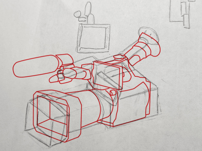 Je te partage seulement quelques ajustements à la perspective de cette caméra. Observe comme l'objet est en réalité un peu plus compact, mais le microphone latéral s'étend tout en longueur.