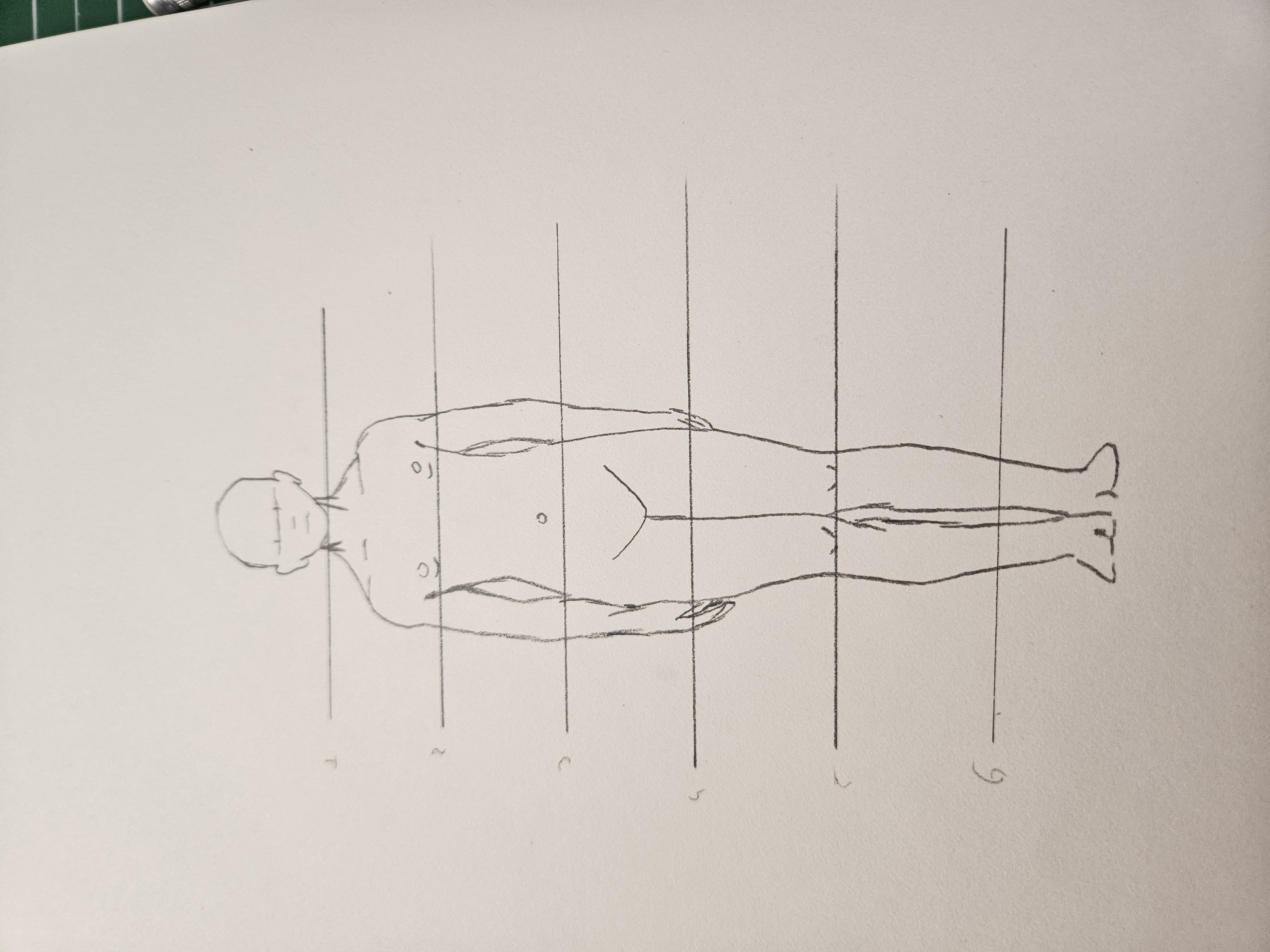 Ich werde Ihnen die Korrektur Ihrer Übung mitteilen. Sie werden feststellen, dass einige anatomische Anpassungen zu berücksichtigen sind, insbesondere hinsichtlich der Proportionen. Denken Sie daran, dass das Zählen der Köpfe Ihnen dabei helfen kann, ein genaueres Ergebnis zu erzielen.