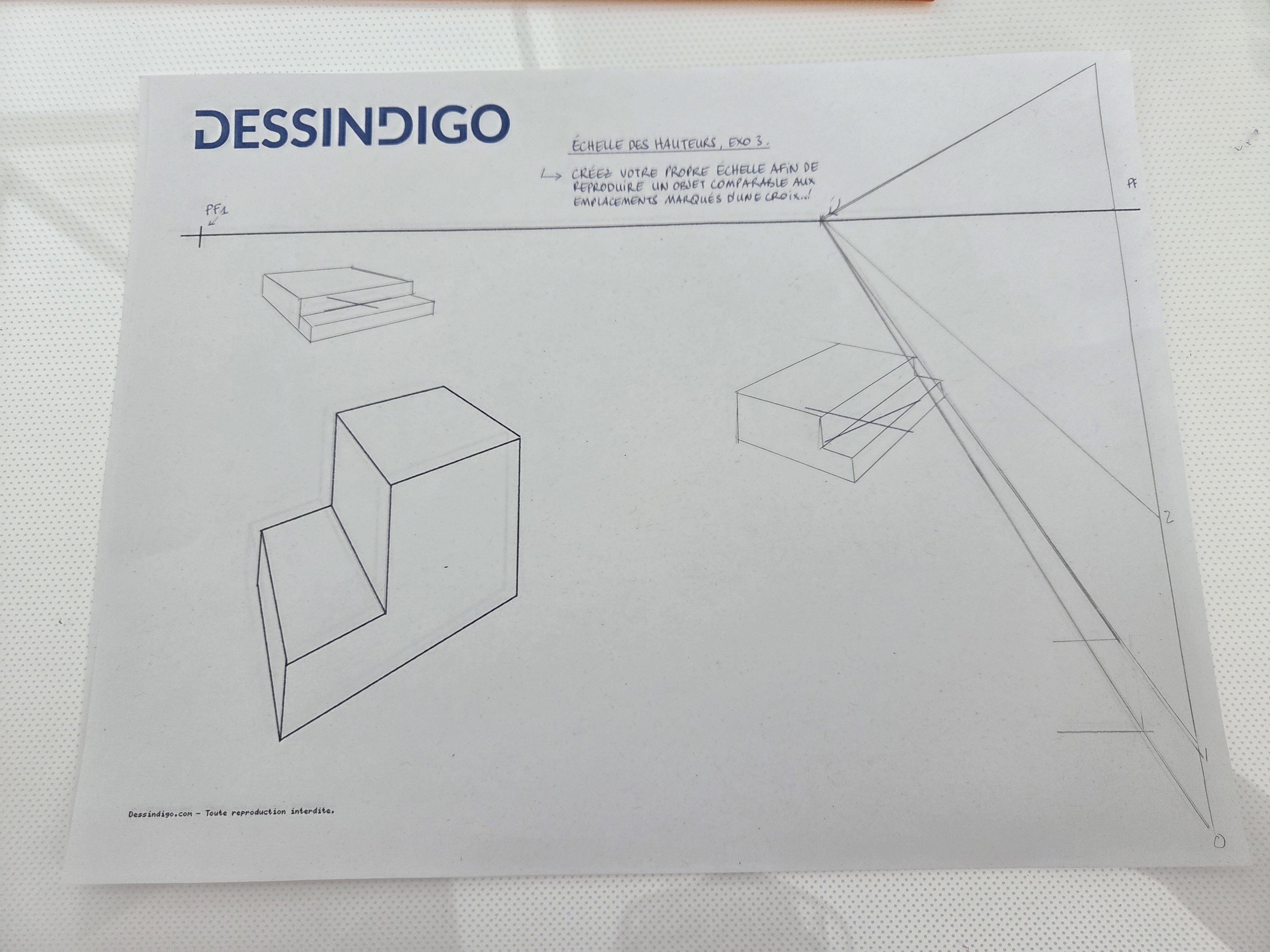 Je te partage la correction de ton exercice. Observe attentivement les projections pour bien comprendre le changement dans les dimensions du dessin.