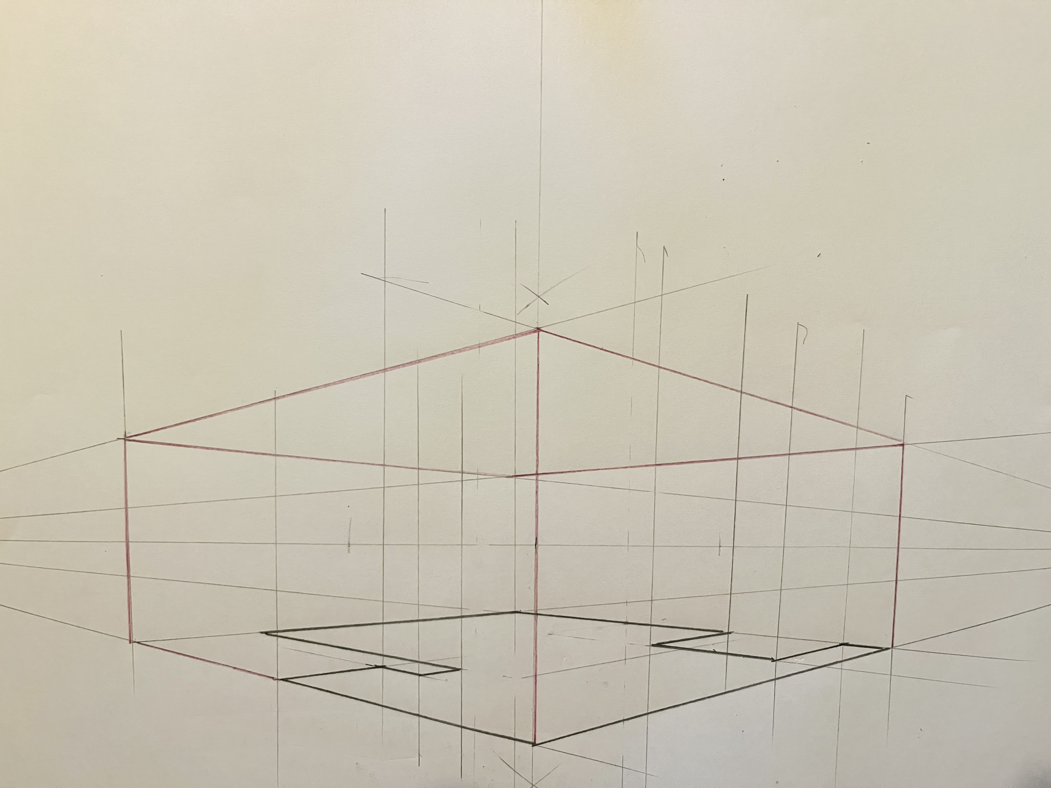Die zweite Übung, die ich heute gemacht habe, bereitete mir einige Probleme. Ich konnte keinen Fluchtpunkt finden. Ich habe mich ein wenig auf die Intuition verlassen. Ich muss mir diesen Kurs noch einmal ansehen.
