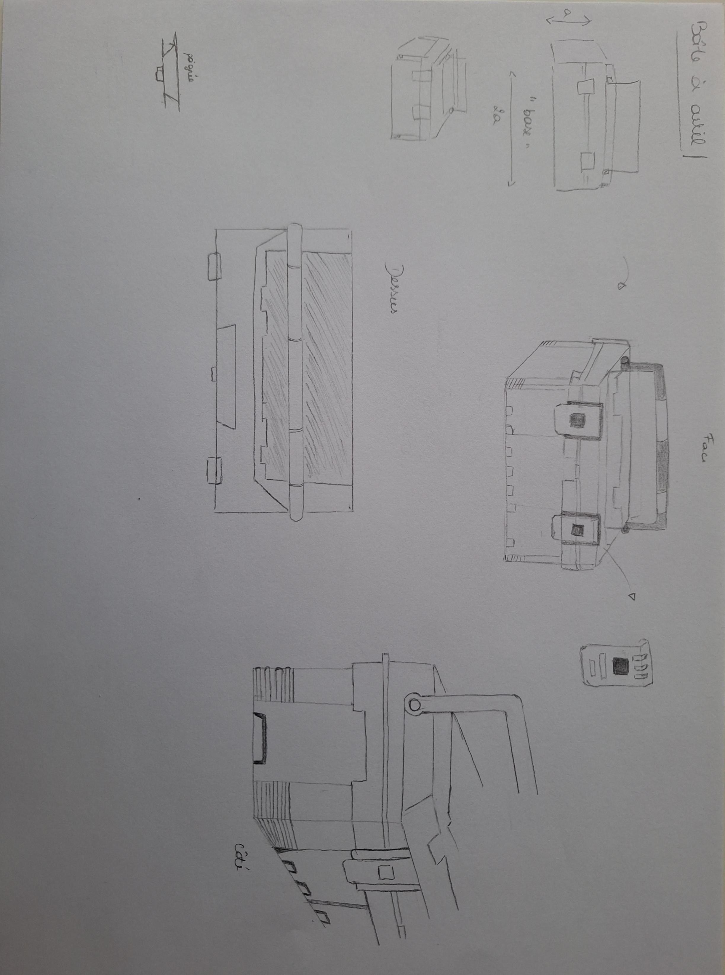 J'ai tenté l'exercice qui était assez difficile pour moi, étant débutante. Assez de difficulté avec les proportions à main levée, perspective, mon trait me semble lourd (toutefois, je suis passée du crayons B à un porte mine en cours de route) et j'ai l'impression de vouloir déjà ajouter trop de détails... Que pensez-vous de ce premier jet? Je le retravaillerai sur base de vos commentaires et puis, passerai à la caméra. Merci