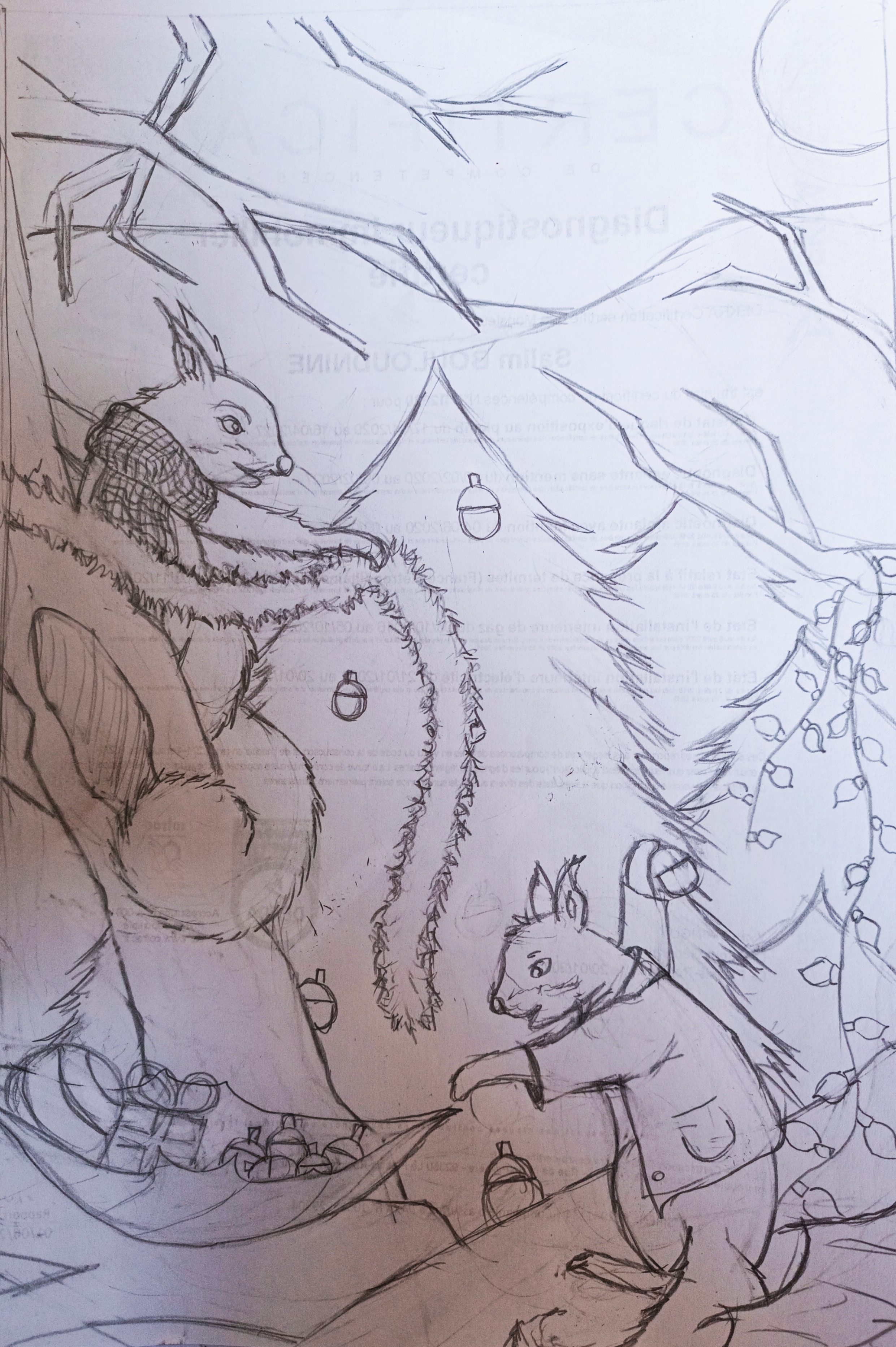J'ai mis mes personnage dans le décor proposé , j'ai tranfsormé le tabouret en pouf . Je ferais l'encrage en tenant compte de vos remarques .Objectif => les enfants de plus de 8 ans dans le style Sempé .