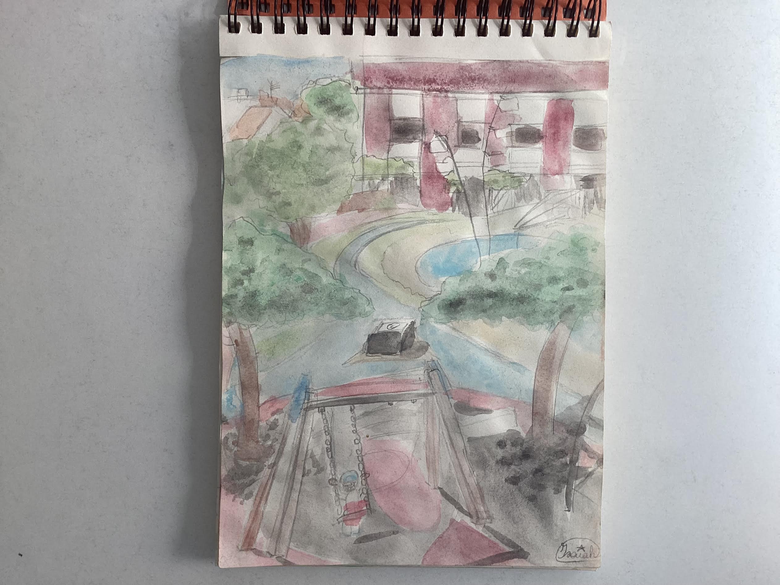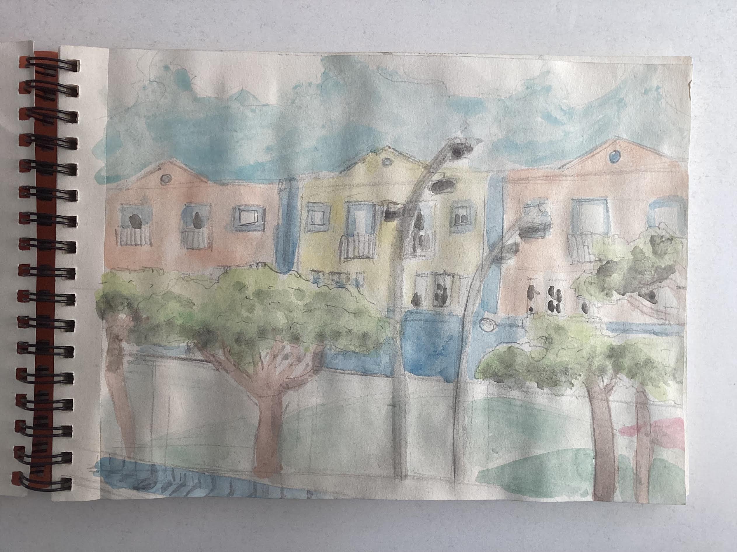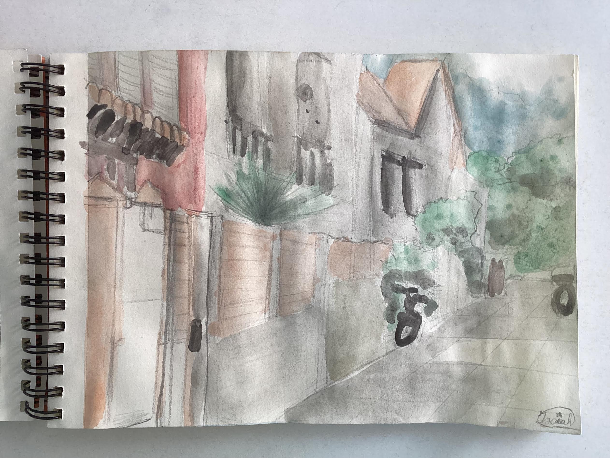 Bonjour, voici un 1er paysage que j'ai esquissé, puis peint à l'aquarelle 😀