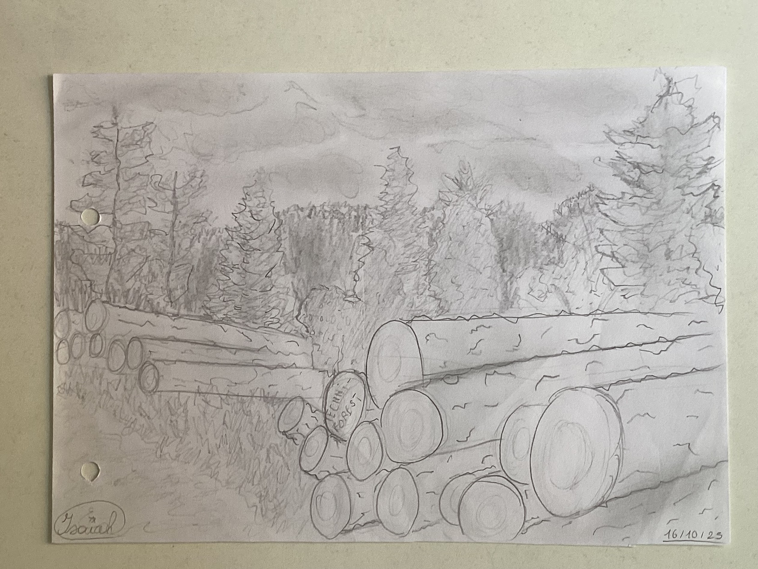 C'est un bon exercice, les plans sont clairs et identifiables. Je pense que tu aurais pu ajouter un peu plus de texture en utilisant des lignes très fines et douces, complétées par des contrastes marqués par des ombres plus profondes.