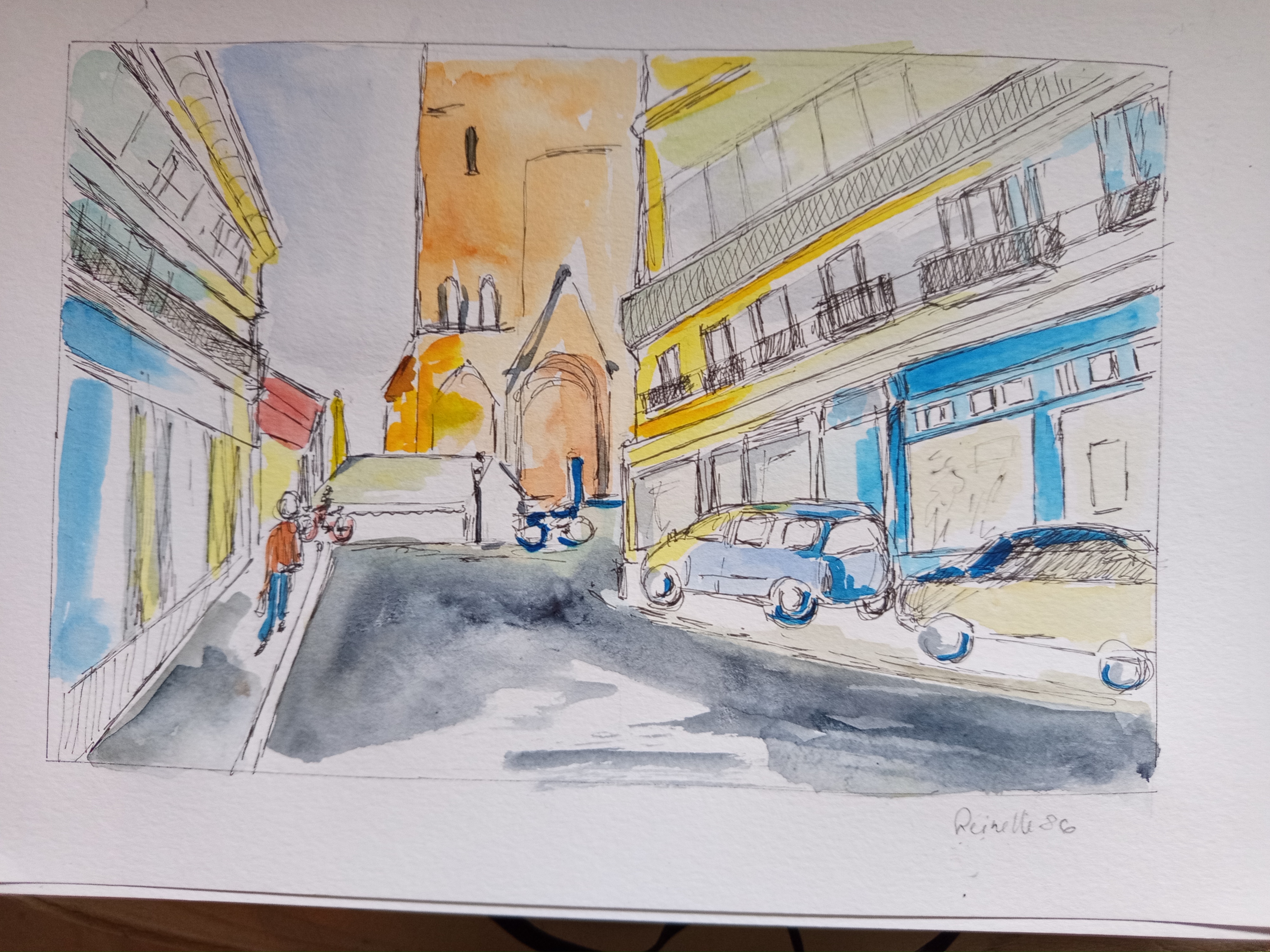 Hier ist die Rue de Nantes. Ich habe viel Zeit dort verbracht und merke, dass ich zu detailliert bin, so dass es nicht mehr wie eine Skizze aussieht. Aber ich habe viel Spaß gemacht.