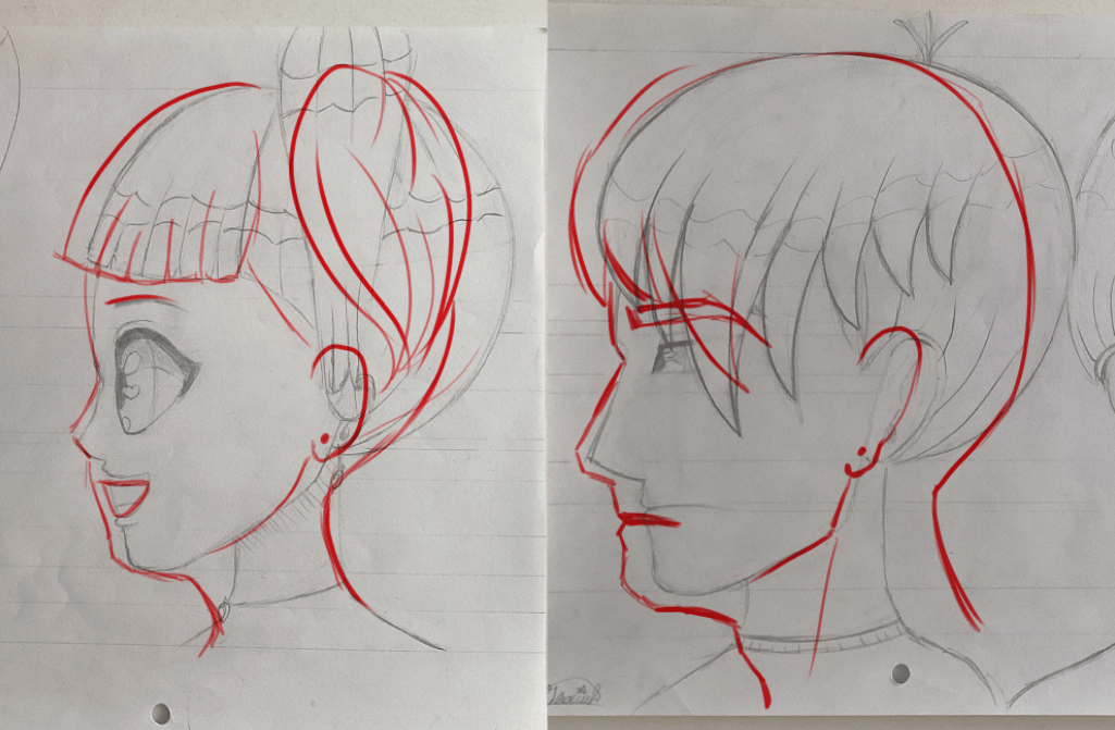 Hallo, hier ist meine erste Zeichnung (weibliches Gesicht vorne und Profil) 😀