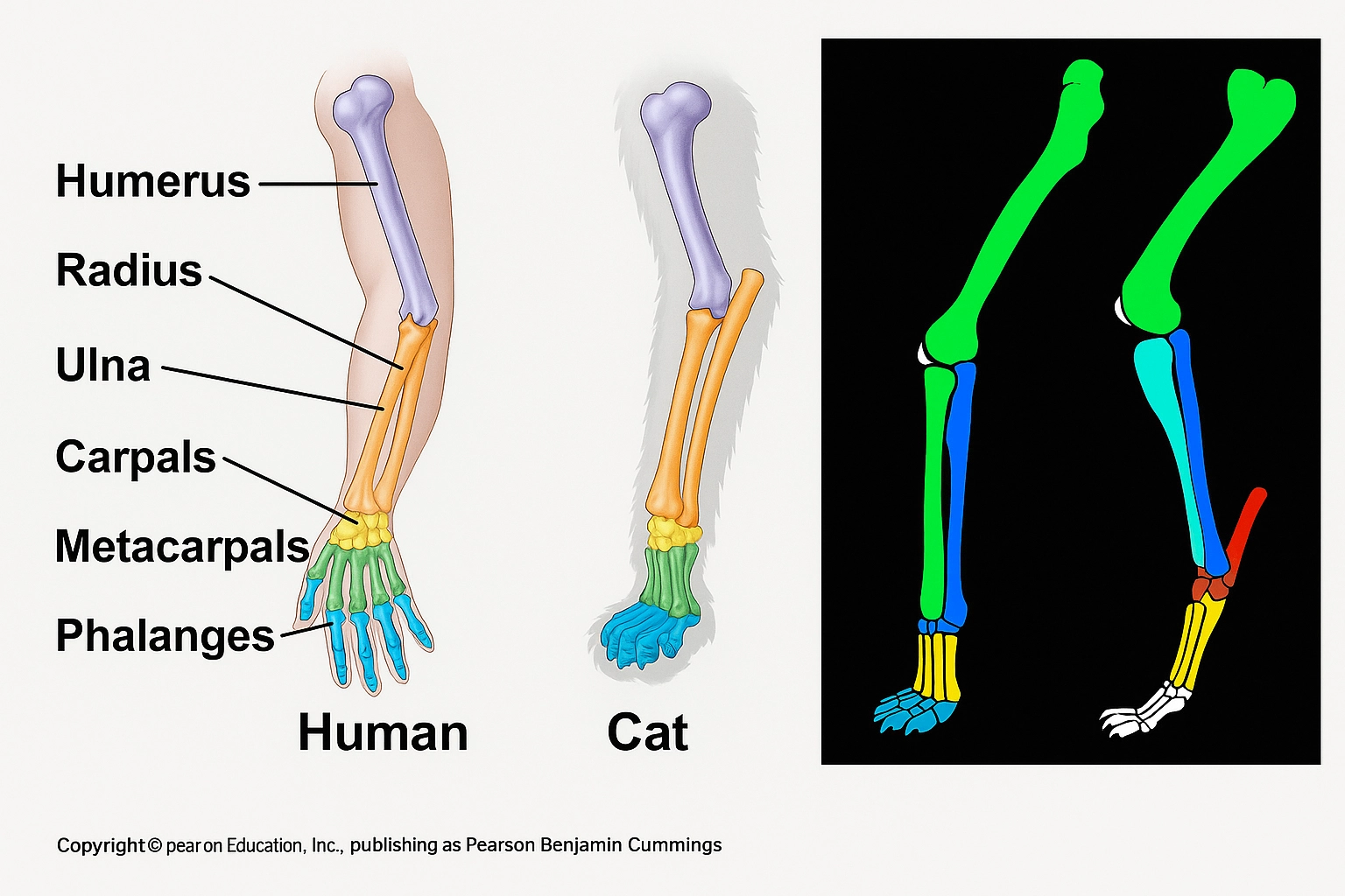 Regarding the skeleton, we can see that, contrary to popular belief, a cat does not have an extra joint compared to ours. It simply stands as if we were standing on tiptoe.