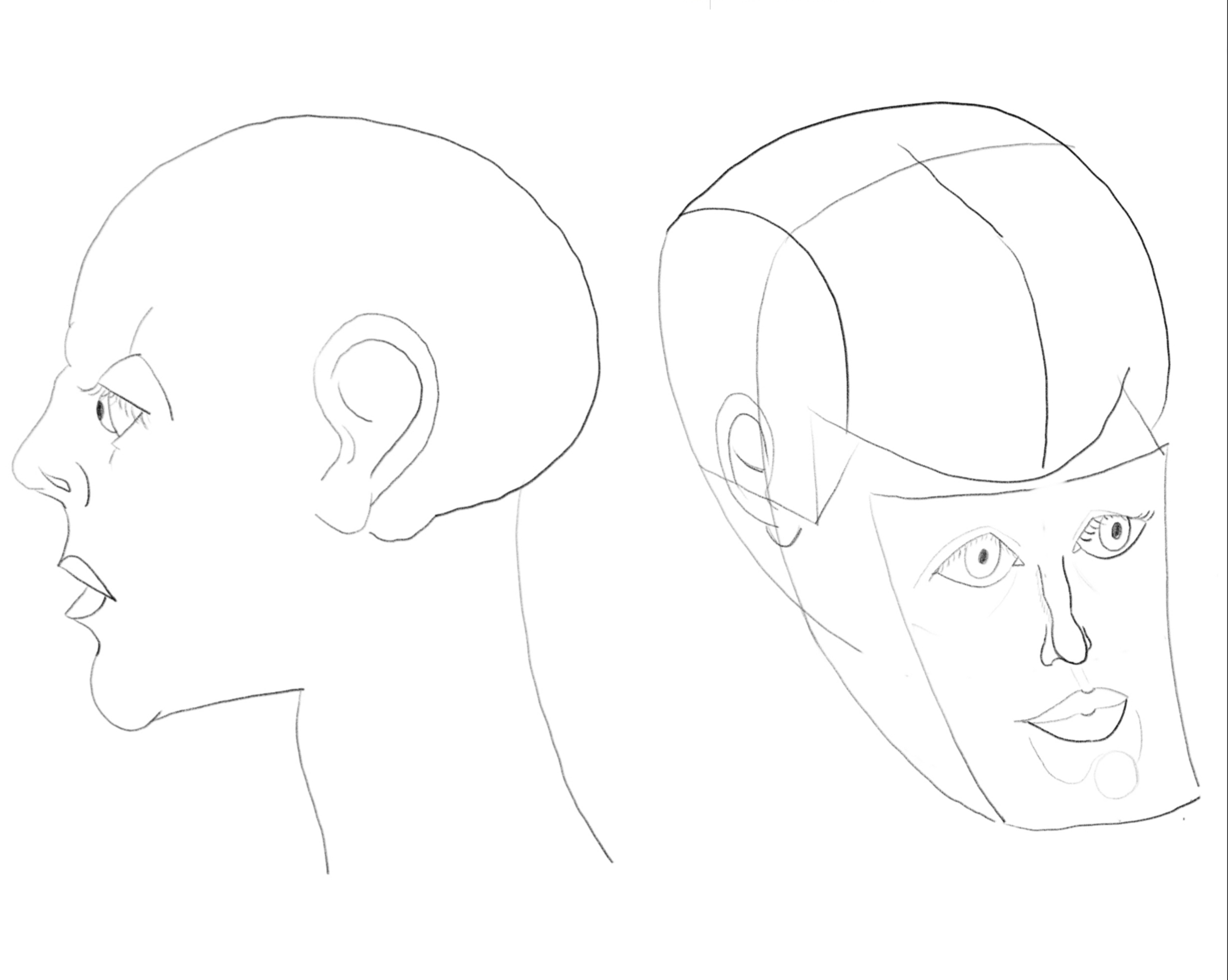 Voici mes exercices de face, de profil et de trois-quart plongé. J'ai encore besoin de travailler la symétrie pour le modèle de face, sinon c'est une catastrophe. Je suis certaine qu'avec un peu (beaucoup) d'entraînement, ca ira mieux!