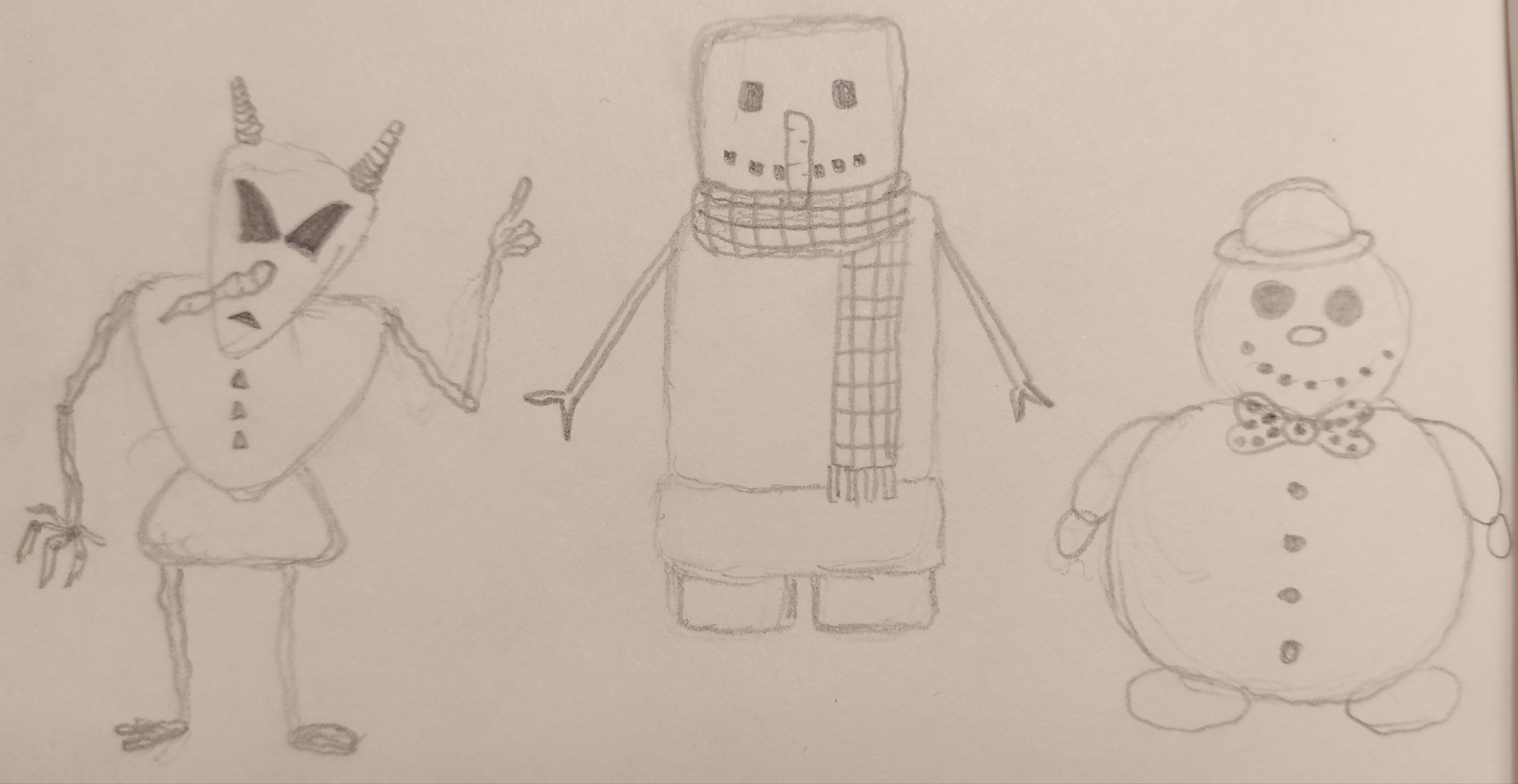 Perfect, no problem! Even if you haven't used the model, you have perfectly understood the principle of the exercise, because your snowmen use different shapes. My only recommendation would be to exaggerate the shapes and dimensions to achieve greater expressiveness.