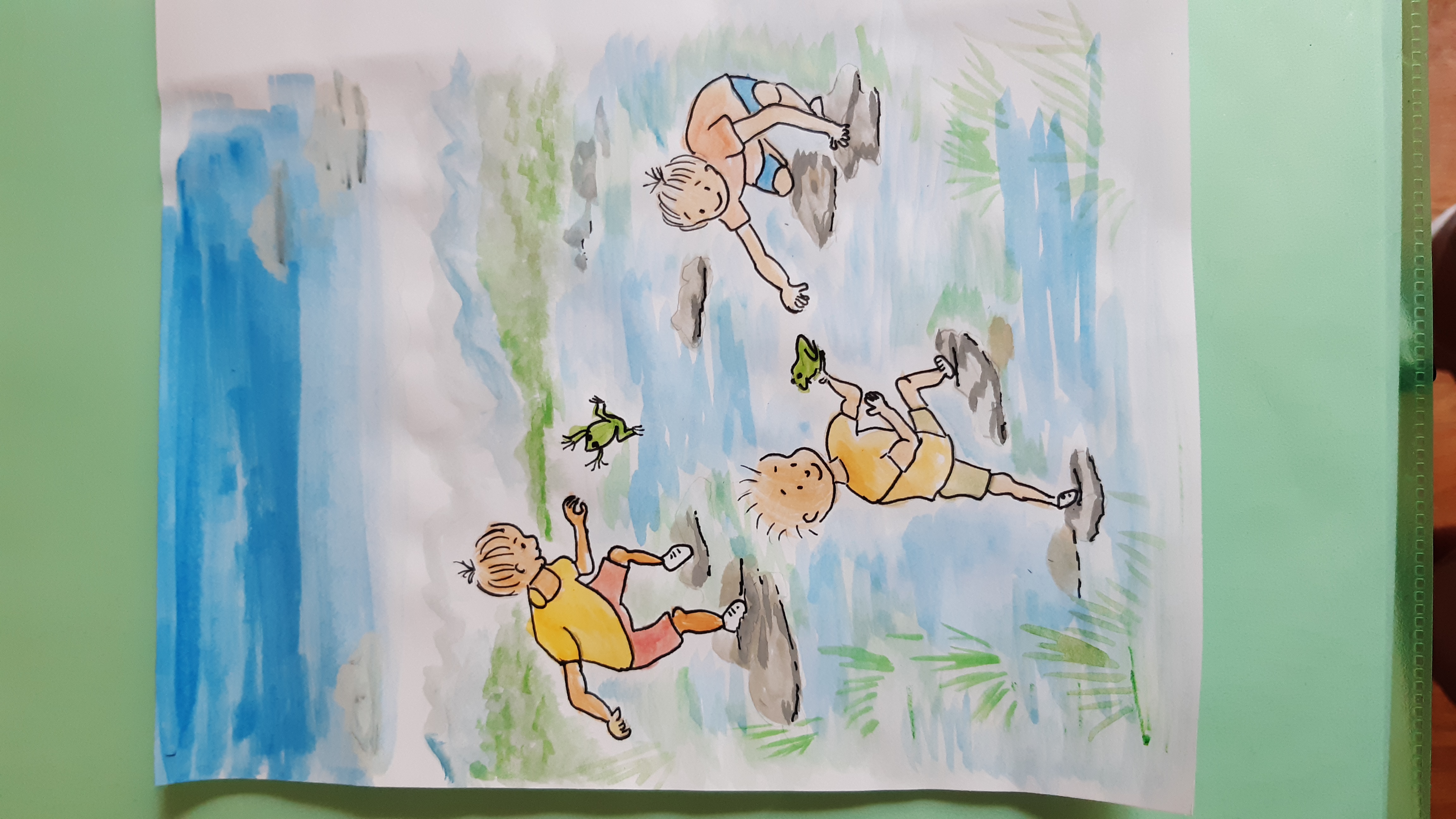 Voici une animation des enfants avec les grenouilles. J'ai toujours des diffficultés avec les différentes positions. j'ai fait le dessin à partir de plusieurs photos différentes. Je n'avais pas de bon papier ni de calque, ce n'est pas encore très propre. C'est vraiment une joie de dessiner et je vous remercie pour ce que vous m'apportez. j'apprécie vos conseils que je mets en pratique. Merci !