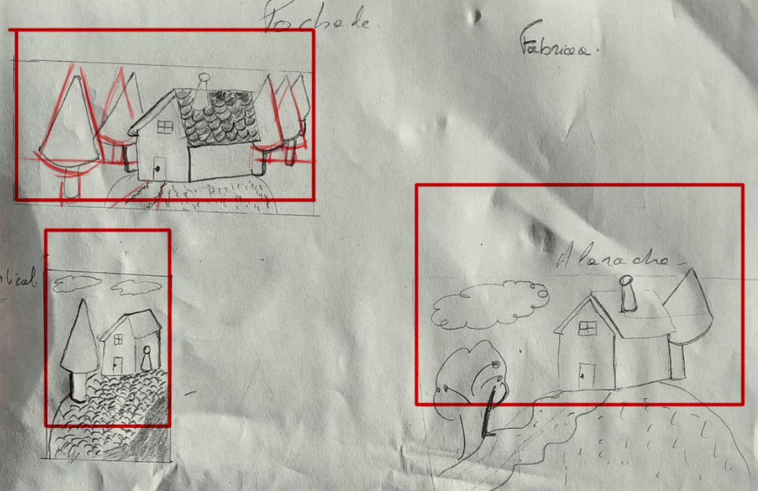 J'ai une observation pour toi : il est peu courant de placer une maison derrière un arbre, à moins que cela n'ait une intention précise dans ta petite histoire, comme "La cabane dans l'arbre où les enfants jouent".