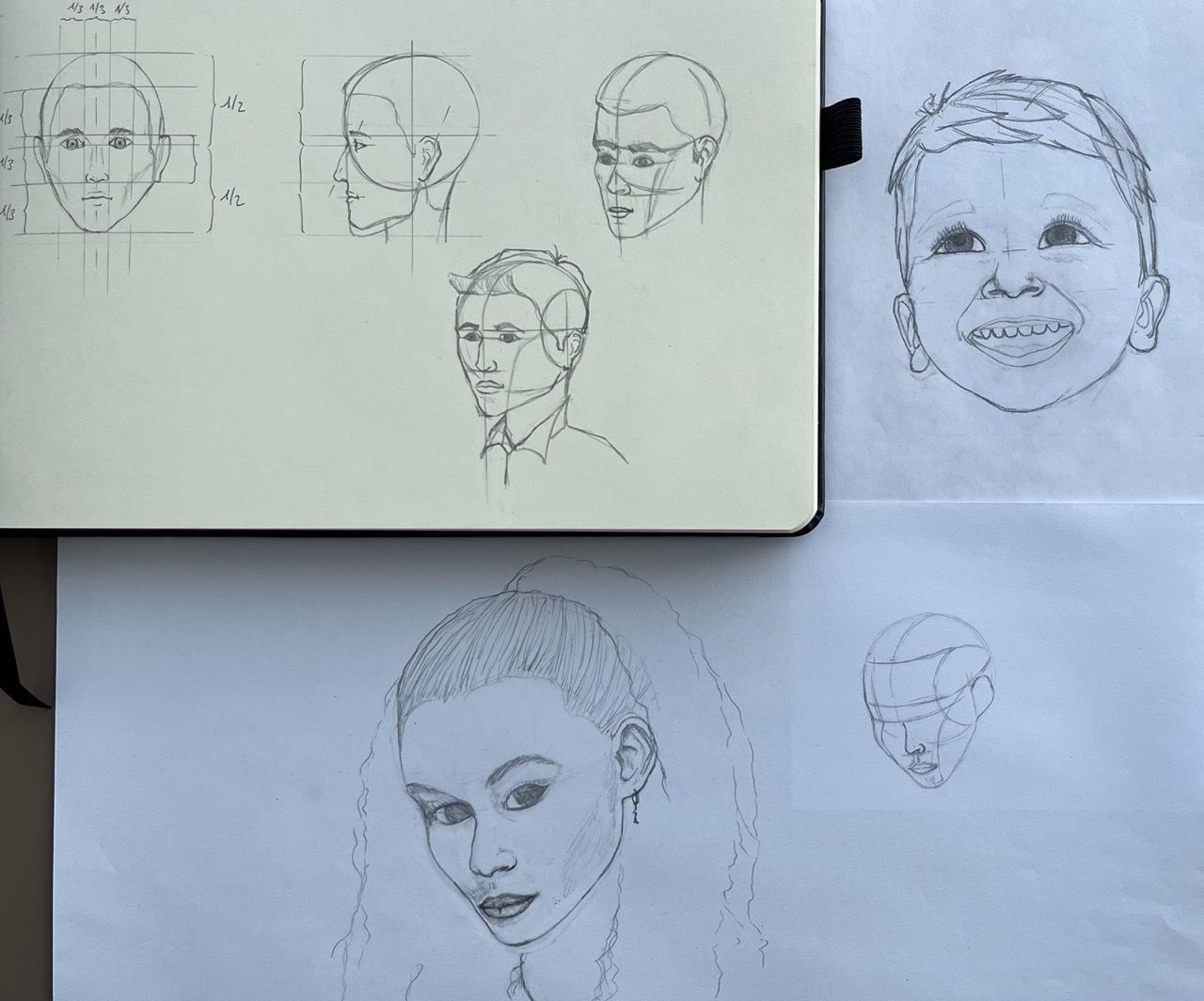 For this course I stuck to the rough outline in order to integrate the different stages as well as two slightly more advanced portraits (the one on the right that I had made previously and the one at the bottom that I made after the course).