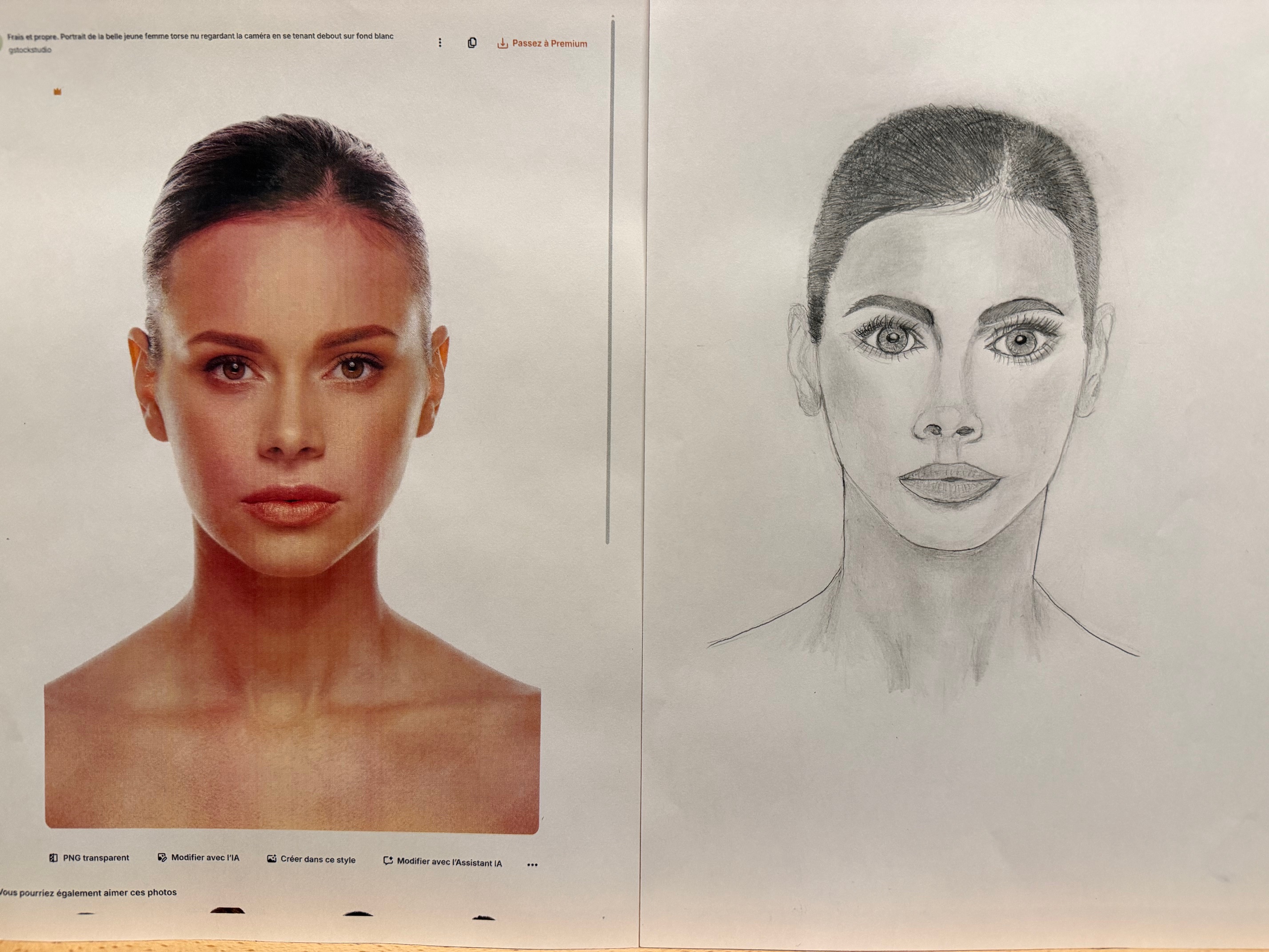 Je te partage la correction de tes portraits. Comme tu peux le constater, il y a effectivement une amélioration substantielle sur le deuxième ; tu as réussi à mieux capturer les proportions et les traits. Je te recommande donc de continuer ce type d'études, car seule la pratique affinera ta vision.