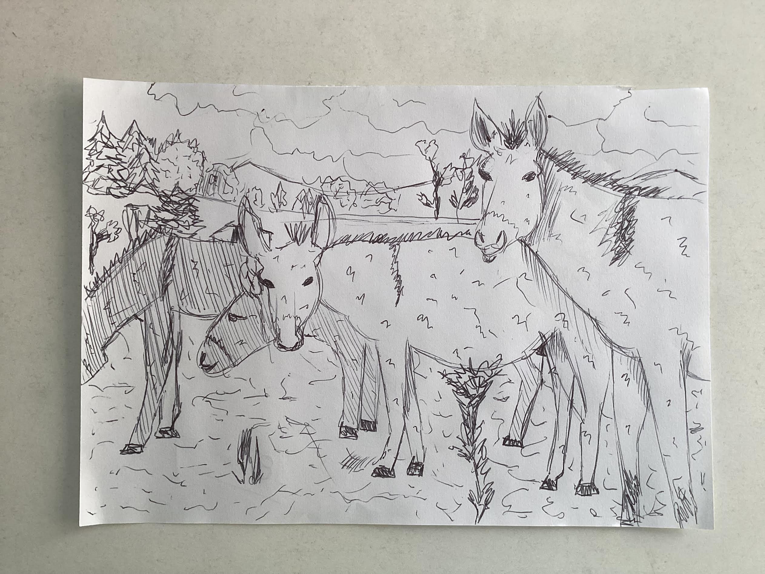 My first test with donkeys, I did it in paper pencil, I worked a little more than sketch.