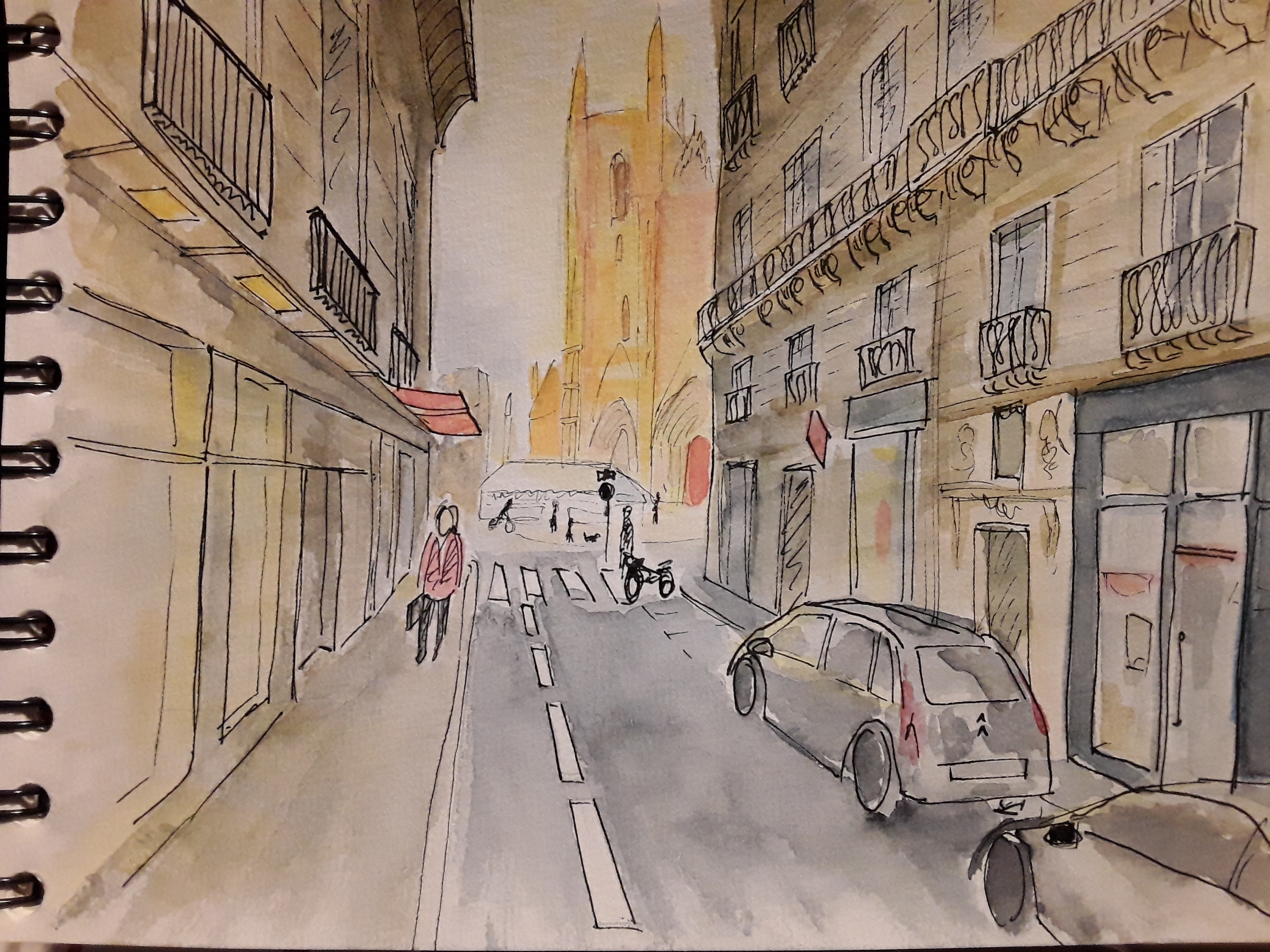 voici la rue de Nantes. J'y ai passé beaucoup de temps et j'ai conscience d'avoir trop détaillé, ça ne ressemble donc plus à un croquis. Mais j'y ai pris beaucoup de plaisir.