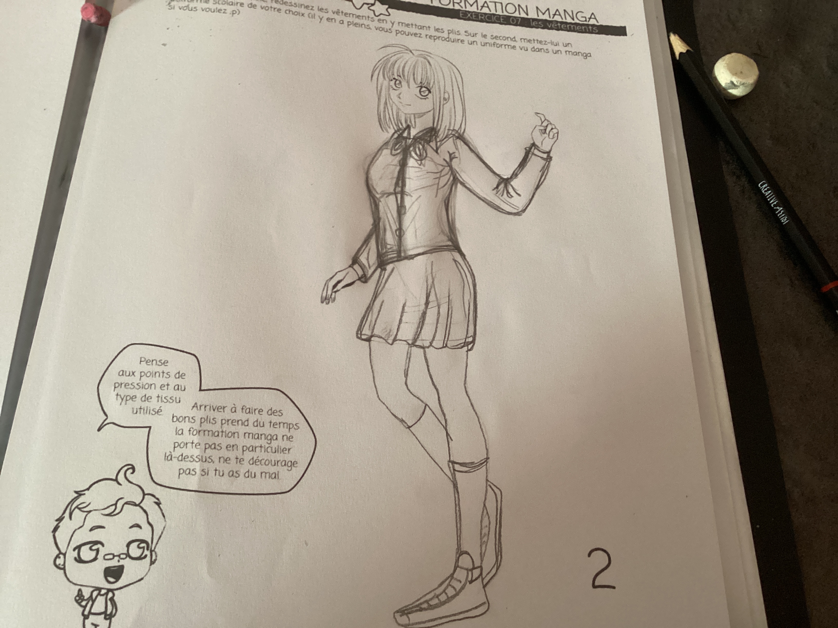 Bonjour pas très à l'aise avec les vêtements et l'emplacement des plis! Fait après le cours!