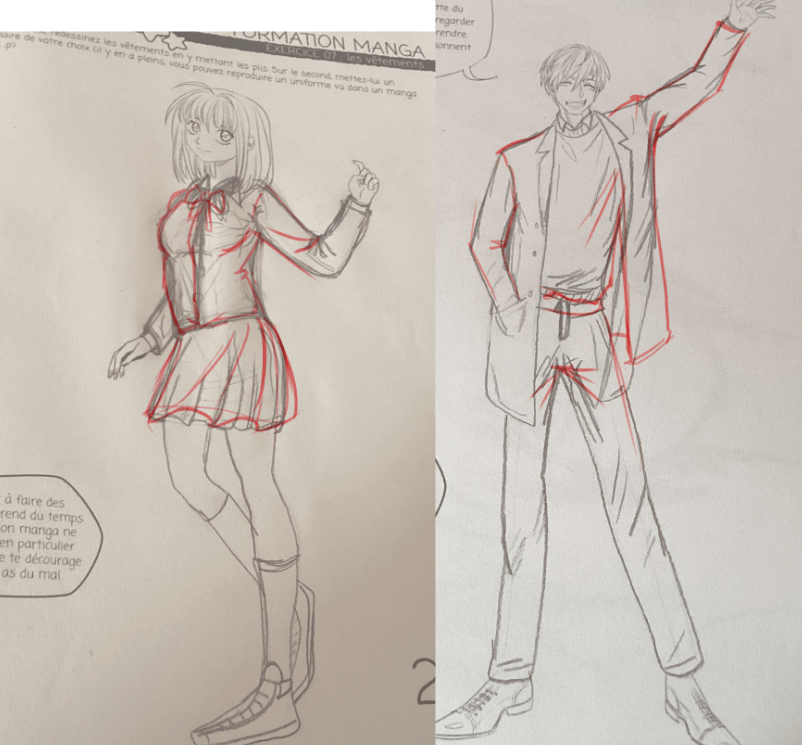 Et voici le premier exercice ça a été plutôt amusant😁 .j'ai l'impression qu'il y a un problème au niveau du pantalon, j'arrive pas à trouver pourriez-vous m'aider svp 🙏🏾