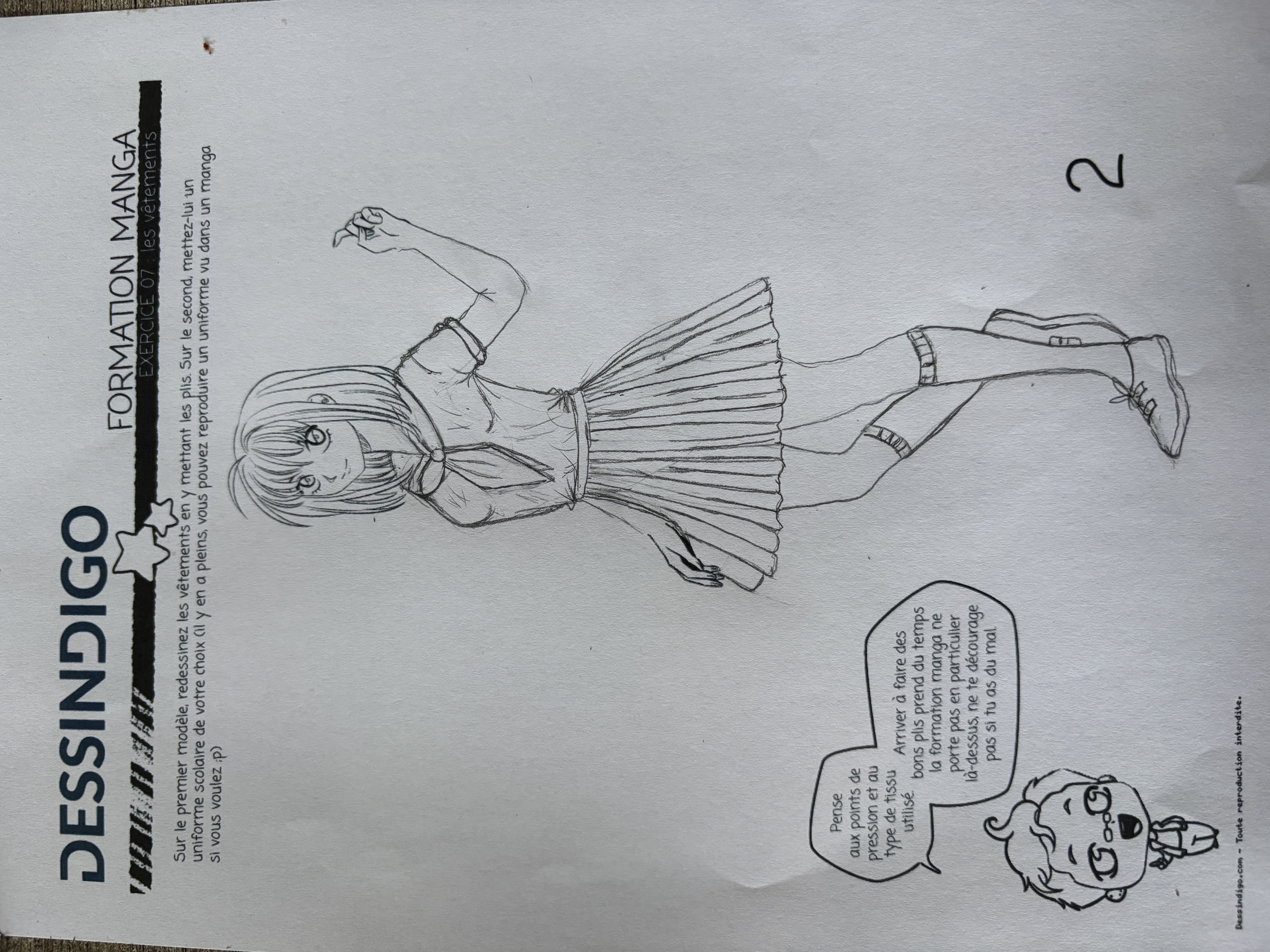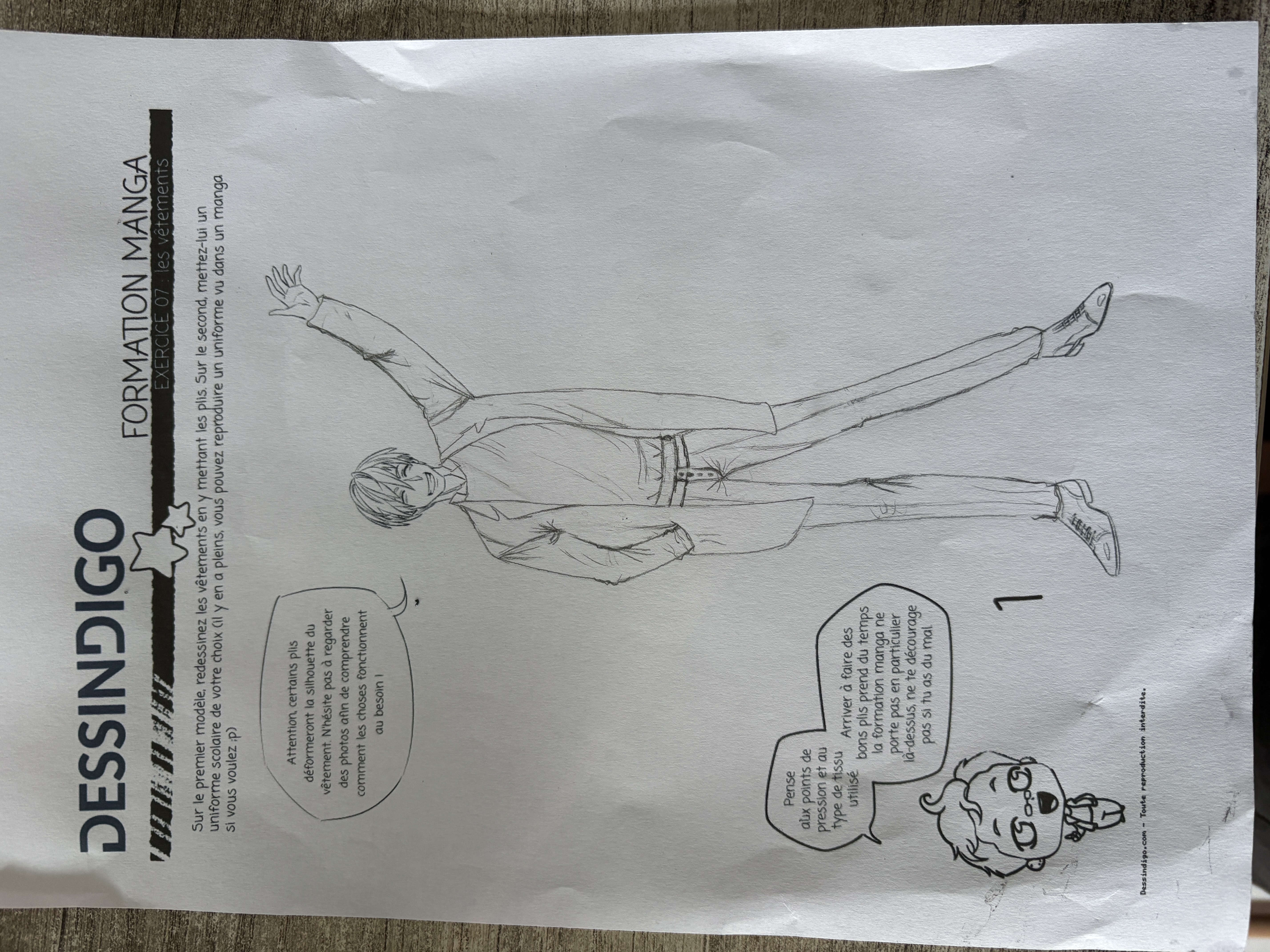 Salut Pieroyolo, super, beau travail! Pas grand chose à redire sur l'habillage et les plis, tu as bien géré. Rien à voir avec les vêtements, mais attention à ton encrage, essaie de faire des traits plus continus pour éviter tout un tas de coupures ou de raccord dans tes lignes... 🙂