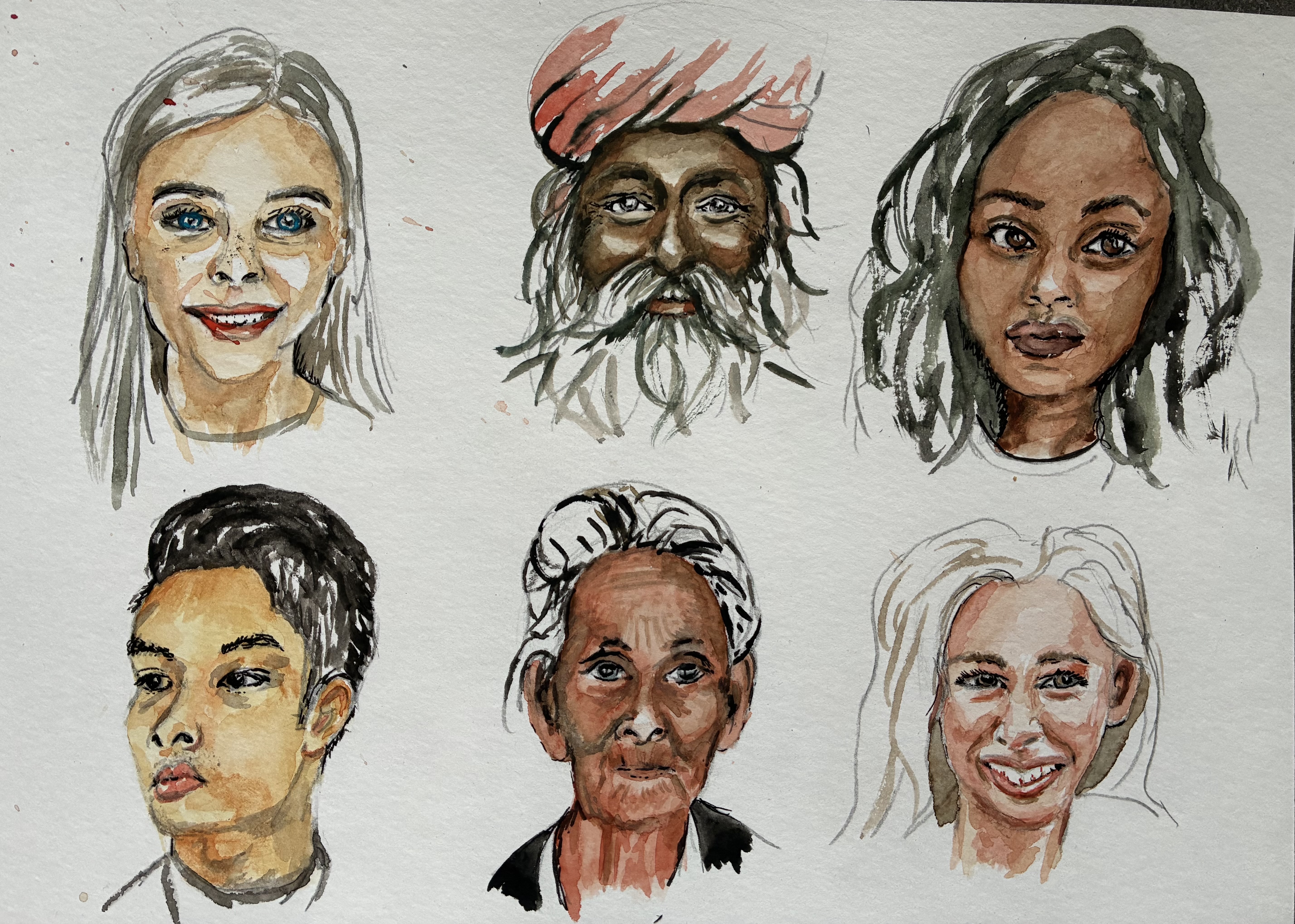 Merci pour ce cours, je n'ai pas pu m'empêcher de fdessiner les visages et pas uniquement me concentrer sur les couleurs de la peau.