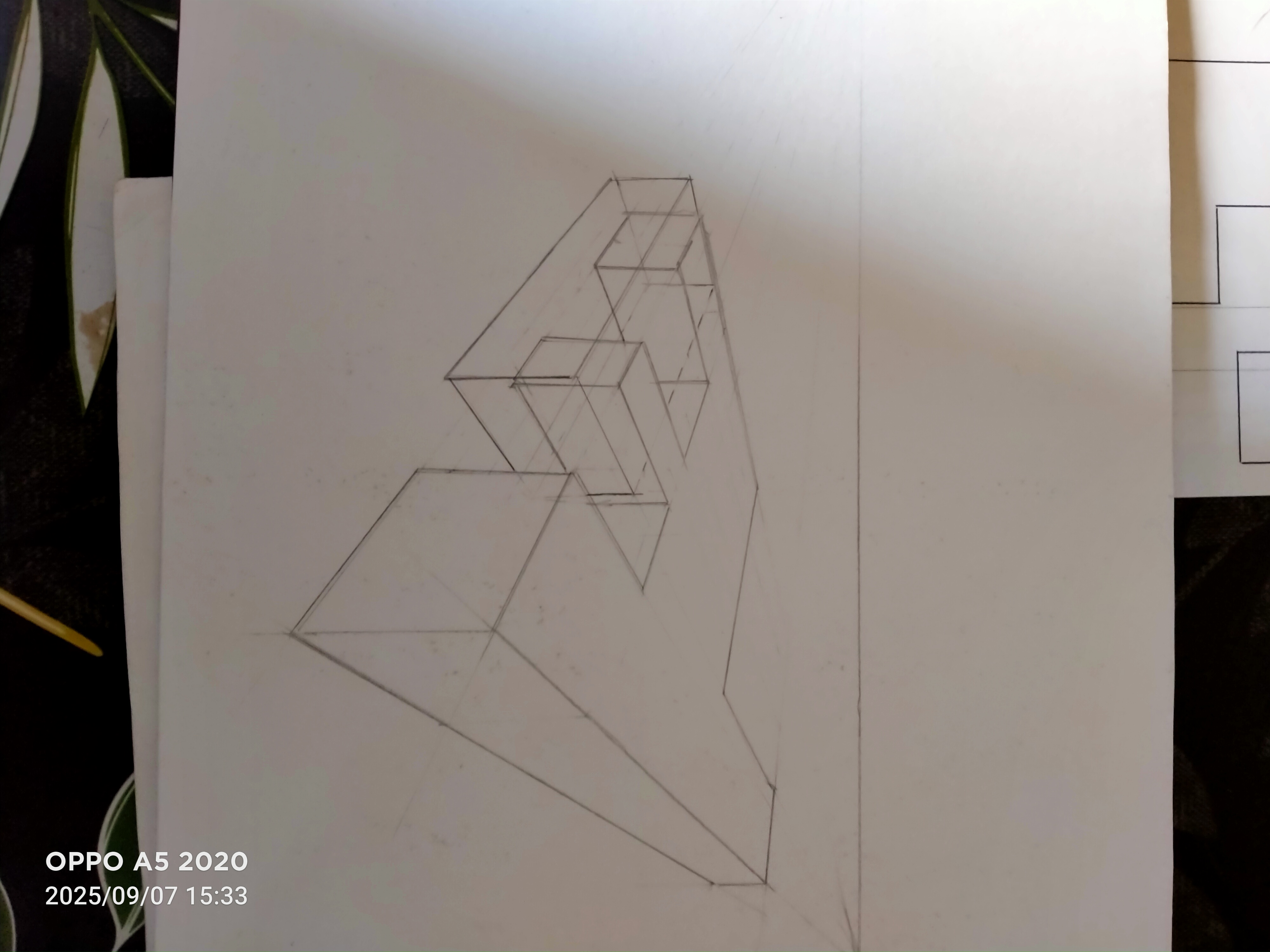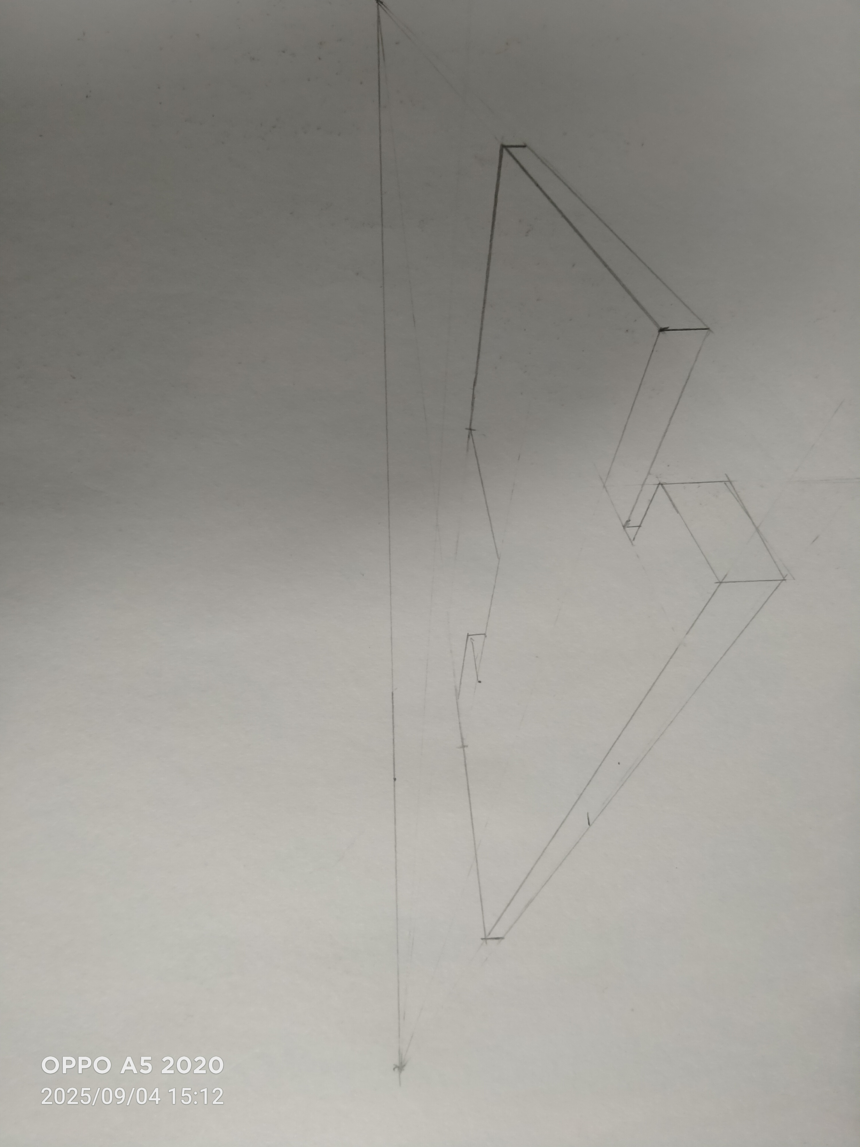 Comme toujours, tu as très bien réussi ! La projection à partir des points de fuite est propre et précise. L'ajout du troisième point de fuite nous donne une vue isométrique assez claire. D'un autre côté, on peut voir que tu as bien utilisé la valeur de ligne. Cependant, si tu le souhaites, tu peux utiliser des lignes encore plus fortes sur les contours pour donner plus de clarté et une touche esthétique, tout en prenant bien soin du dégradé que tu as réussi à obtenir. Je te félicite encore et je passe à la révision de tes autres exercices. Très bien joué !