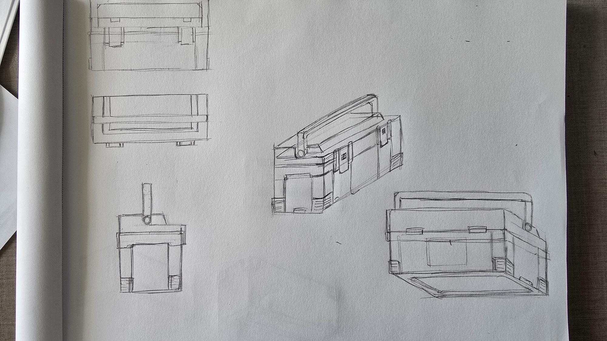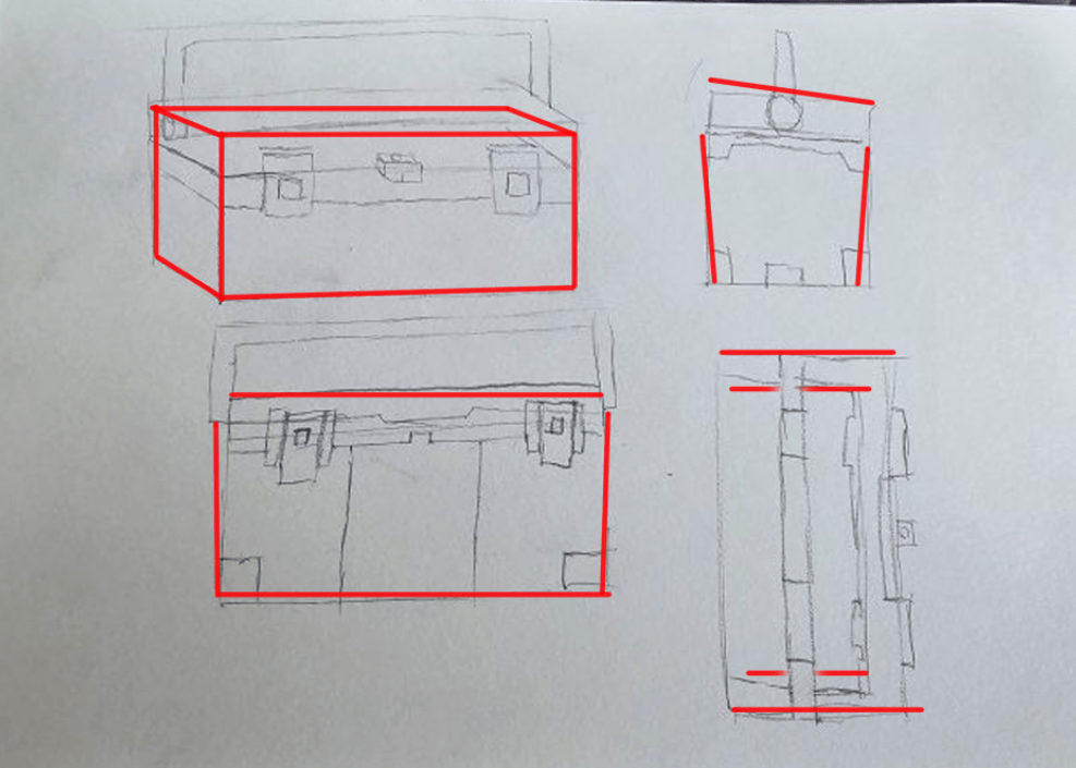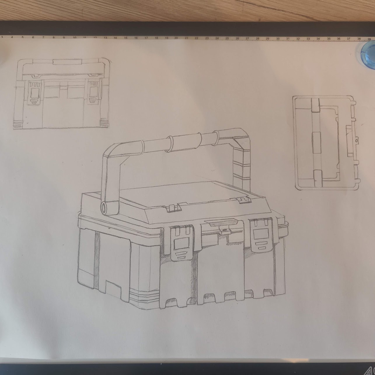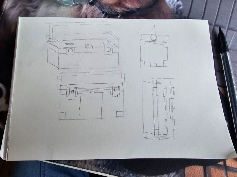 ¡Aquí está mi caja de herramientas! Me costó mucho entender cómo encaja la tapa en la caja en 3D. Y la caja abierta me parece rara