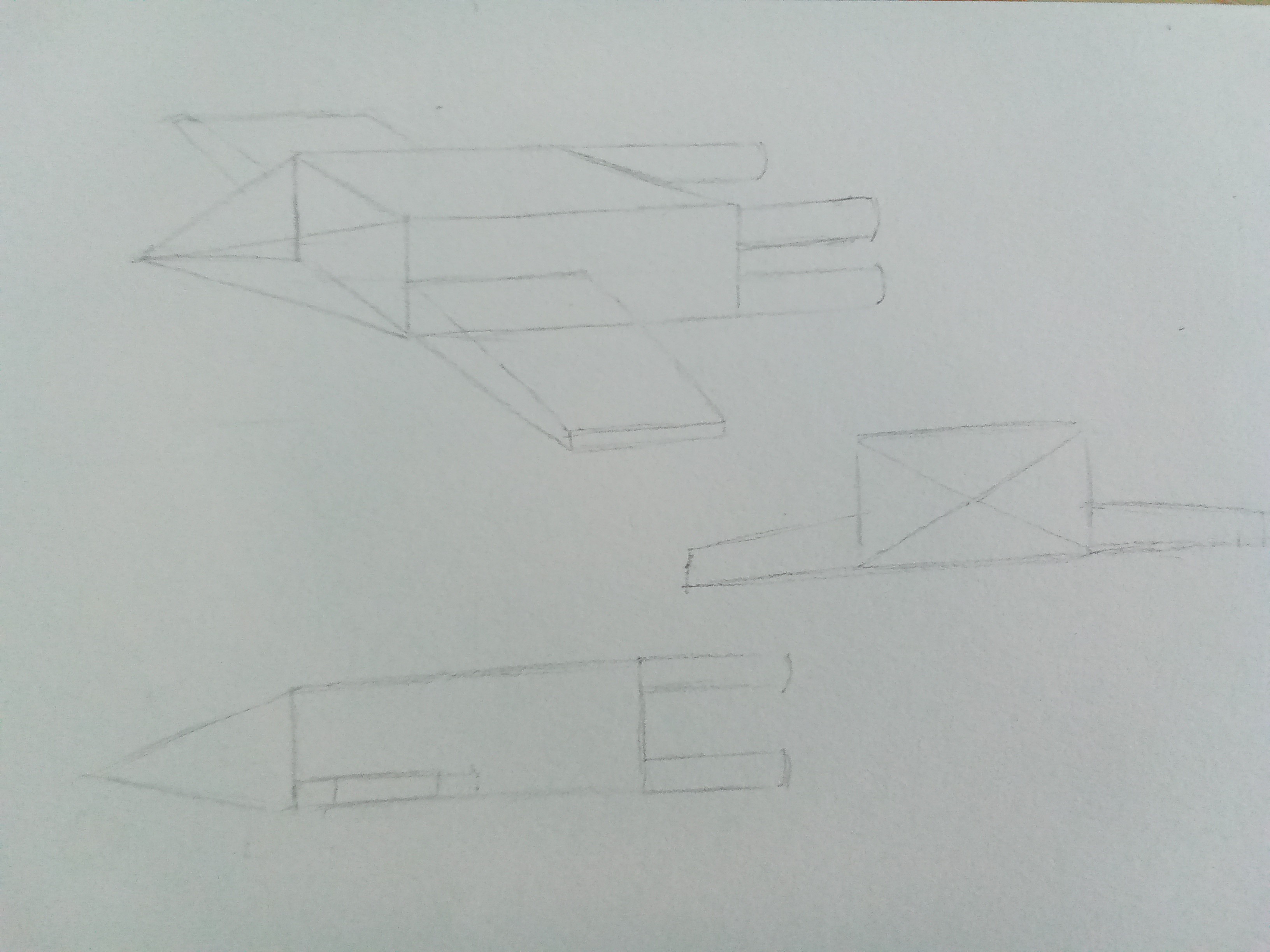 Bonjour j'ai étudié le volume avec un dessin d'un vaisseau imaginaire dan différents angles