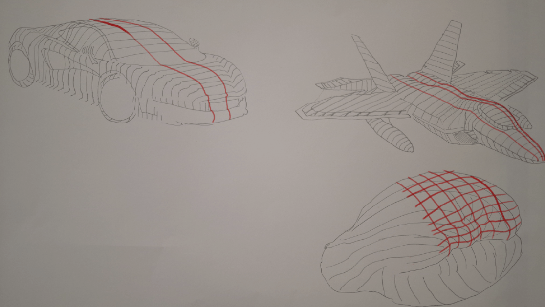 ¡Es genial! Estás en el camino correcto. Ya has dibujado las líneas horizontales de tu modelo, ahora falta agregar las verticales para poder completar la malla de volumen. Recuerda que las líneas deben mantener siempre su dirección.