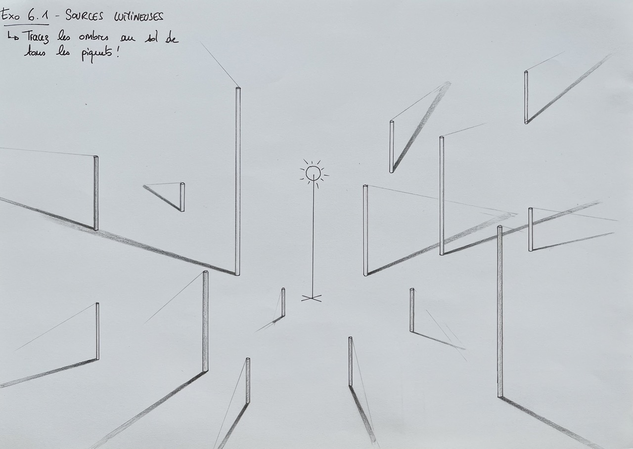 Voici le 1er exercice pour lequel j'ai joué sur le dégradé des ombres projetées ainsi que sur les ombres propres des poteaux.