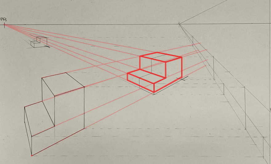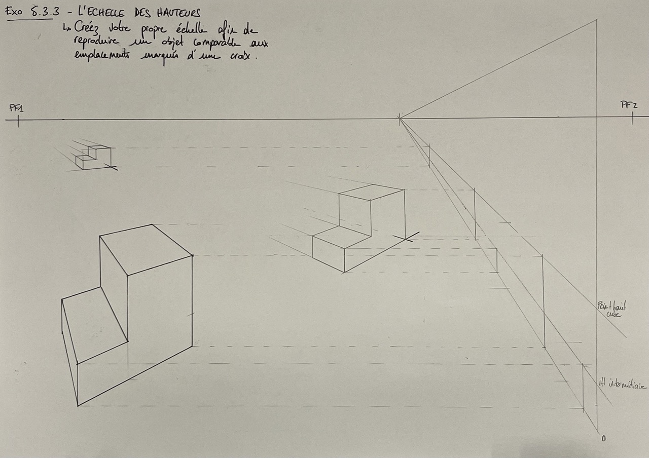 Je te partage la correction de ton exercice. Observe attentivement les projections pour bien comprendre le changement dans les dimensions du dessin.