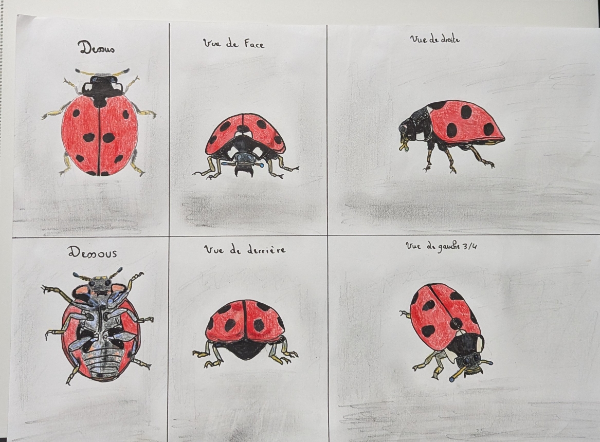 Bonjour, voici ma planche pour la coccinelle. Je ne pensais pas obtenir ce résultat. C'est loin d.être parfait mais pour cet exercice ce n'était pas l'objectif.