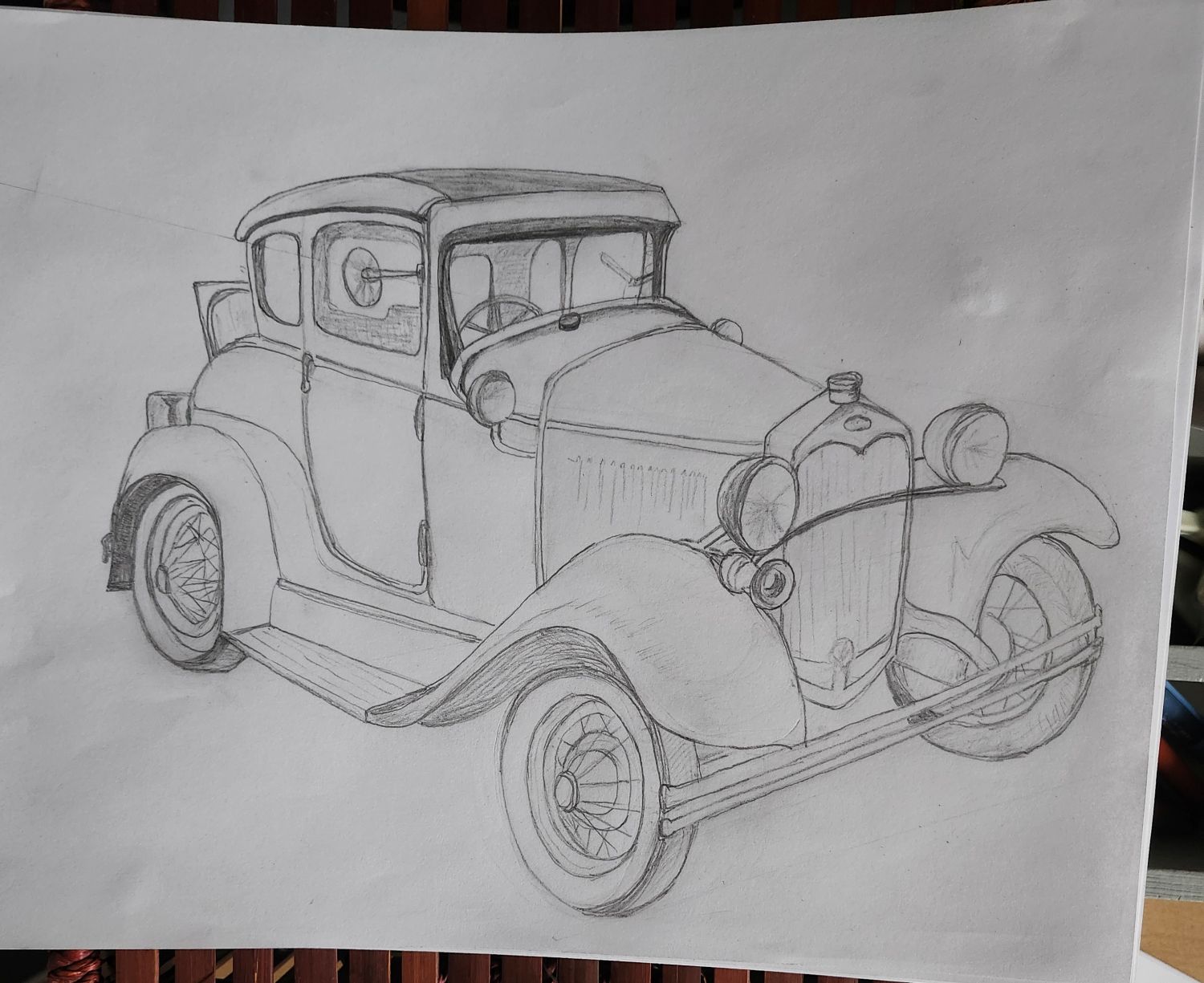 ¡Nunca he conseguido dibujar un coche, así que estoy feliz! (Bueno, no se lo mostraré a ningún amigo apasionado por los vehículos antiguos porque las críticas definitivamente serían duras 😁)