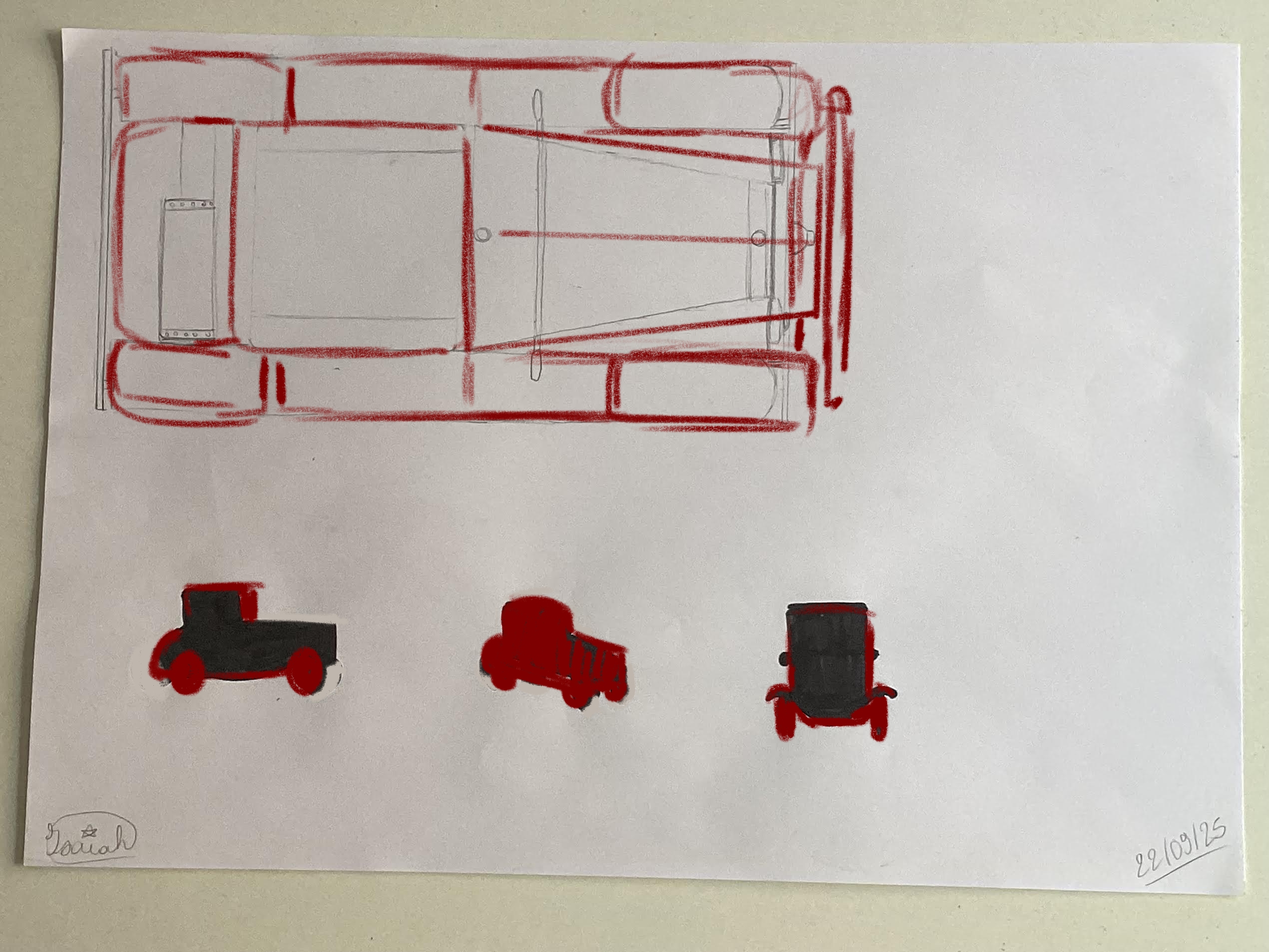 Bonjour, voici mon 1er dessin de la voiture 🙂