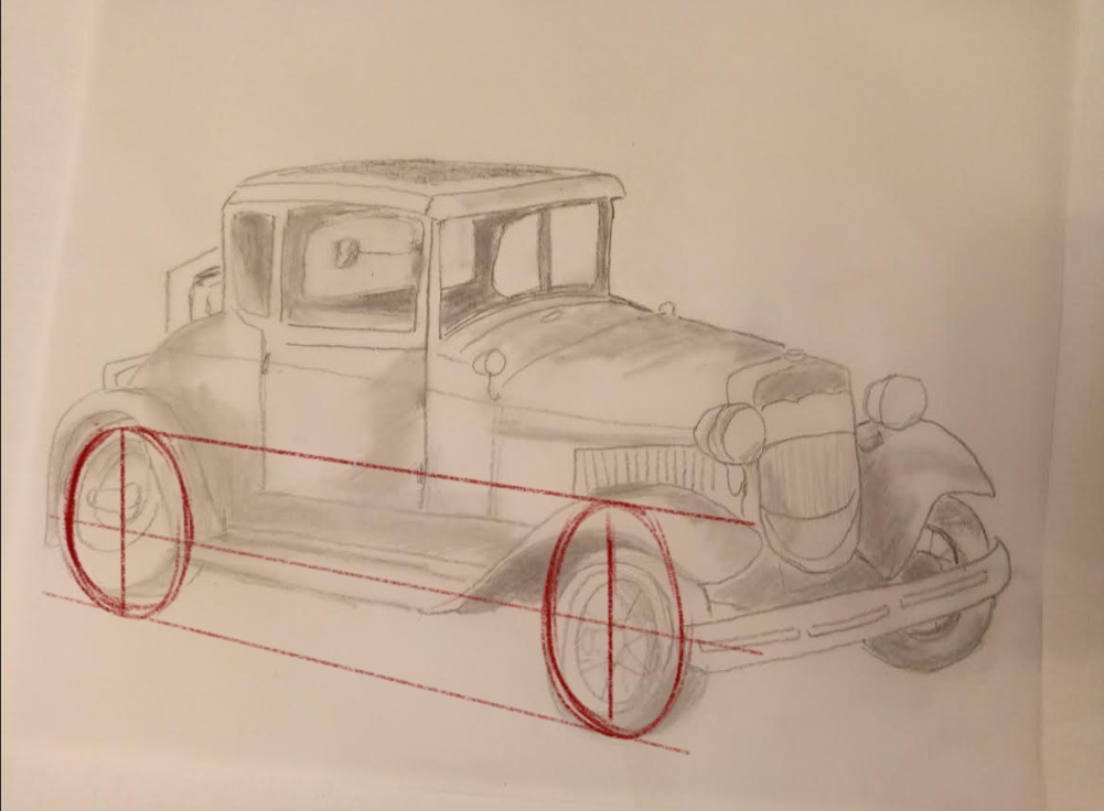 Me fijé en las líneas rectas y en las ruedas, ¡es uno de mis grandes defectos! ¡No tuve la idea de dibujar las líneas!
