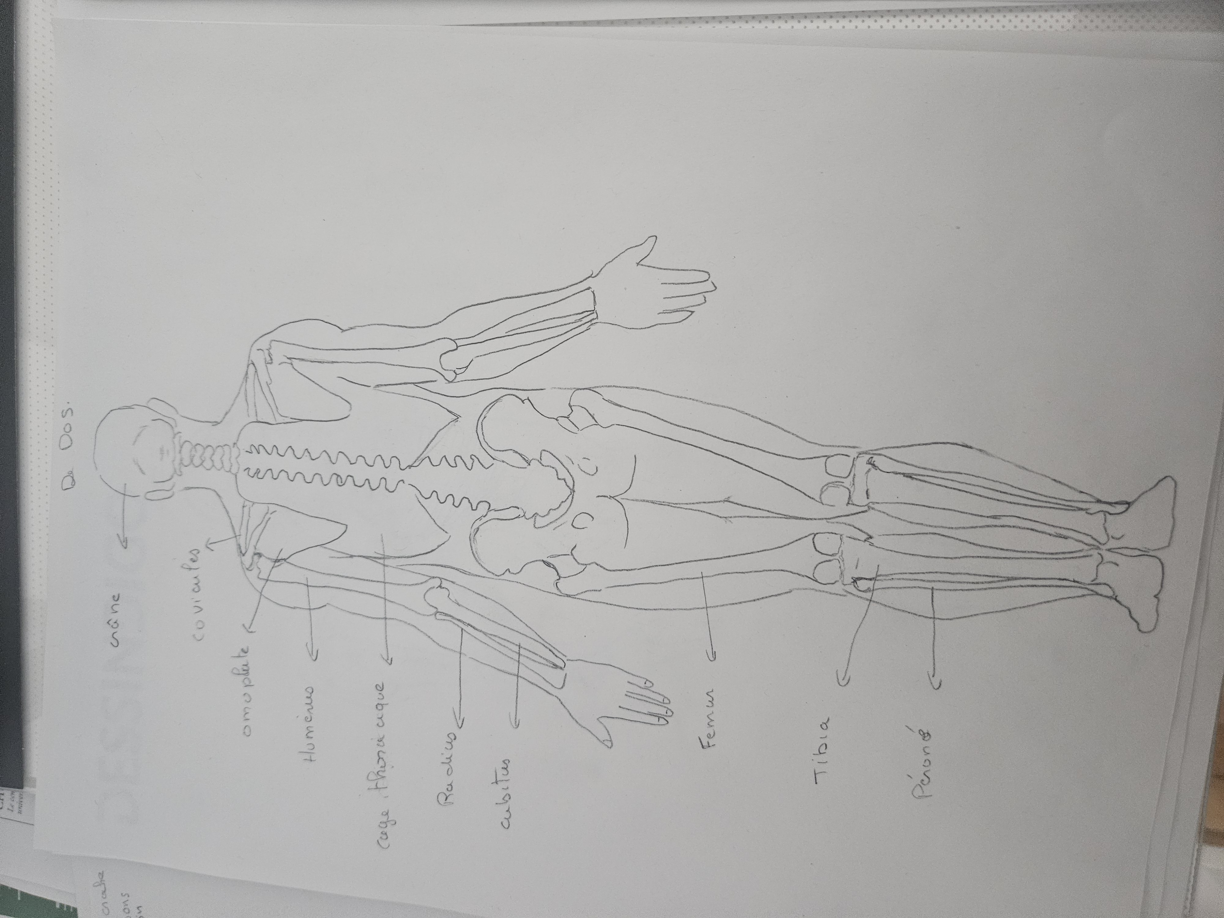 Voici ma version du squelette vu de dos. Il a pris un peu d'embonpoint par rapport au modèle. J'ai essayé de détailler même si ce n'est pas demandé. Cela me permet de mieux retenir et de m'améliorer. Je vais me mettre au profil.