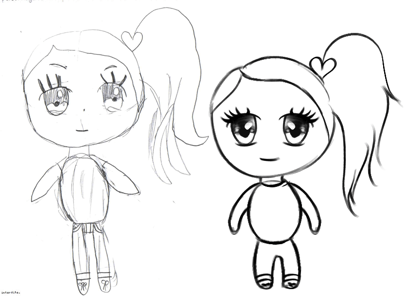 - 1: Presta atención a la proporción del chibi, en particular la relación de cabeza/ cuerpo, el cuerpo tuyo es demasiado alargado, lo que puede hacer un poco torpe, te aconsejo que hagas que el cuerpo entra en la altura de la cabeza.