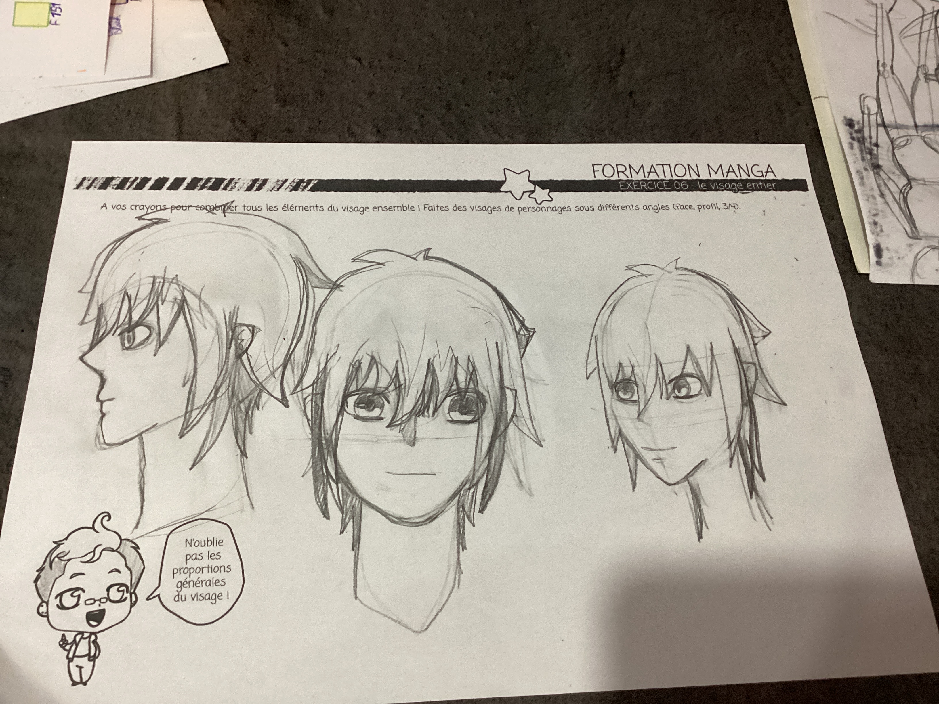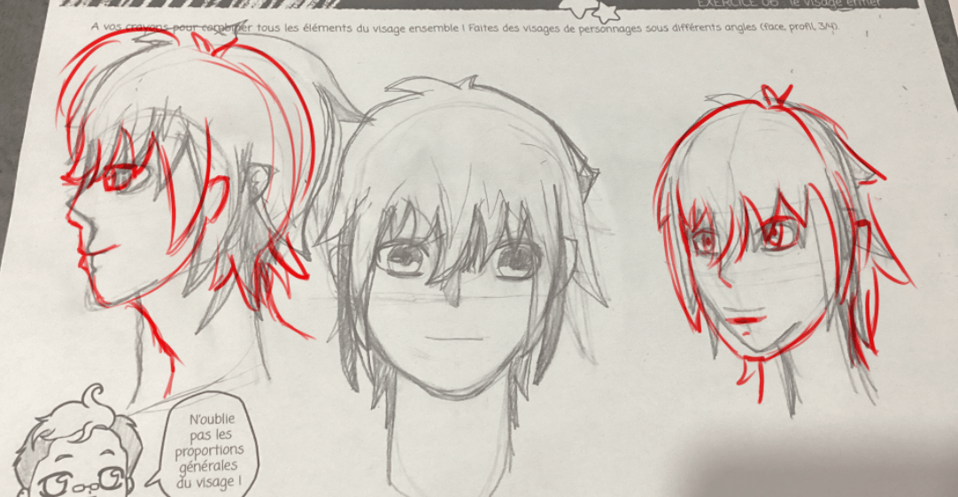 J'ai trouvé ça vraiment difficile, surtout pour celui du milieu je ne savai pas dans quele sens devaient partir les cheveusx et a quel hauteur les placer. Mais c'est vraiment un tres bon exercice.