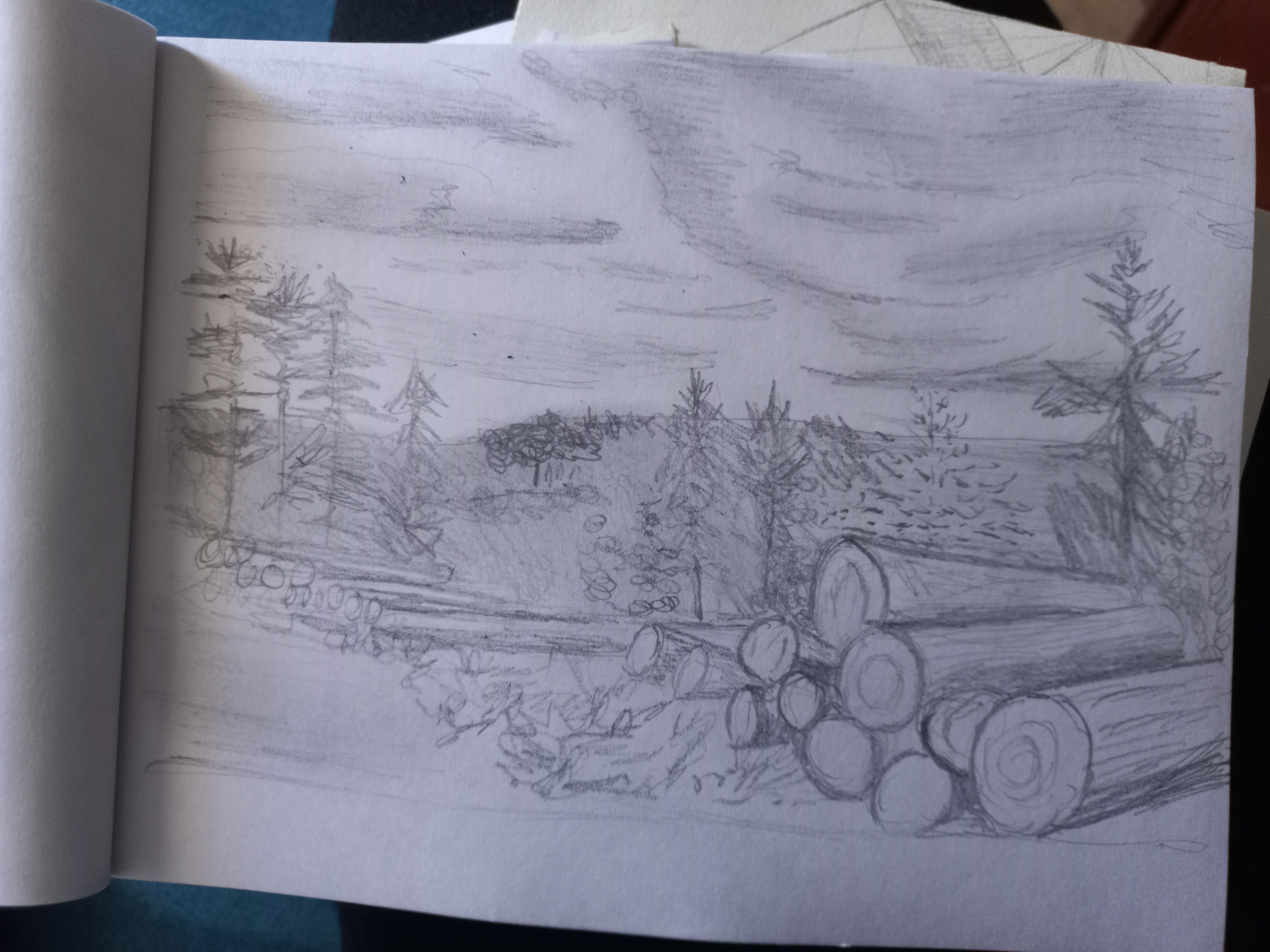 C’est super ! Tu as réussi à tirer parti du graphite pour représenter les textures de ton paysage, tant dans le feuillage des arbres que pour les troncs au sol. Très bien joué !