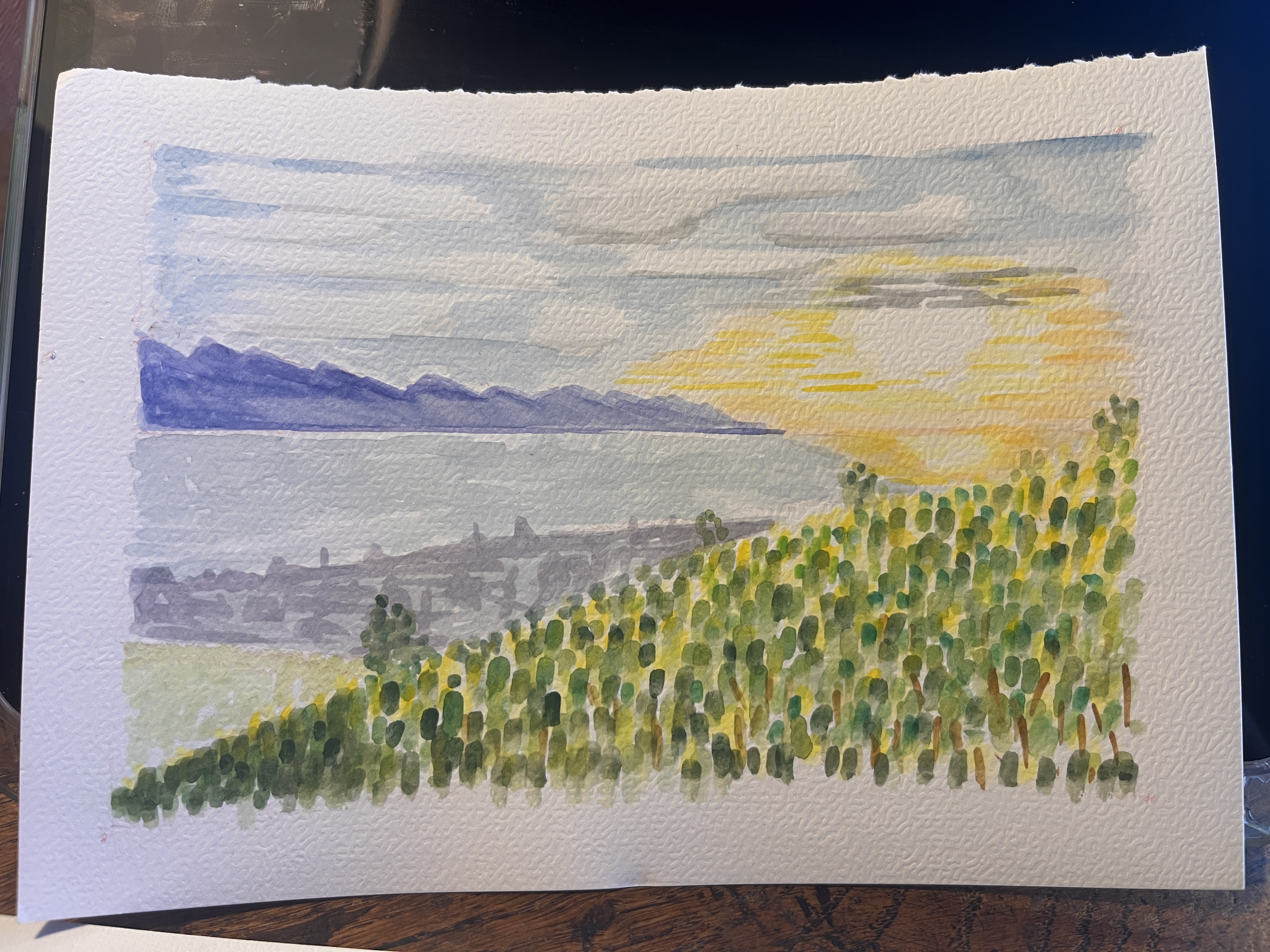 Paysages du Léman... Test en croquis je ne suis pas totalement satisfait de la qualité du premier jet. Je joins le modèle ci-dessous