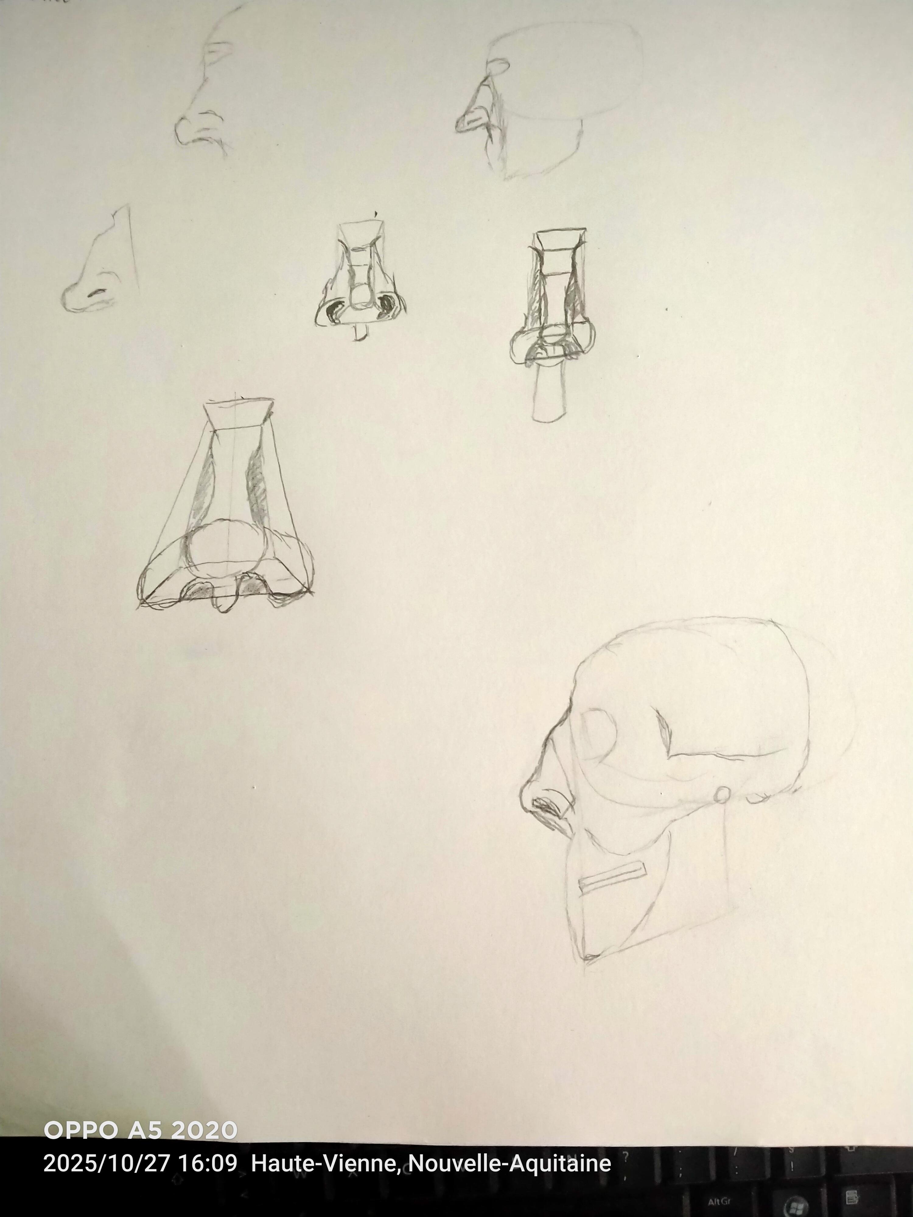 En effet, tu as réalisé plusieurs tentatives réussies, avec la structure correcte d'un nez. Je te partage quelques précisions sur sa forme.