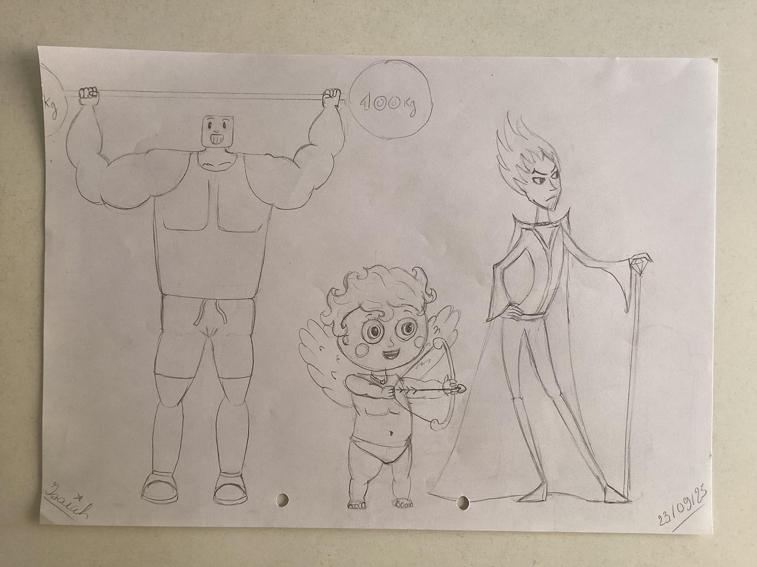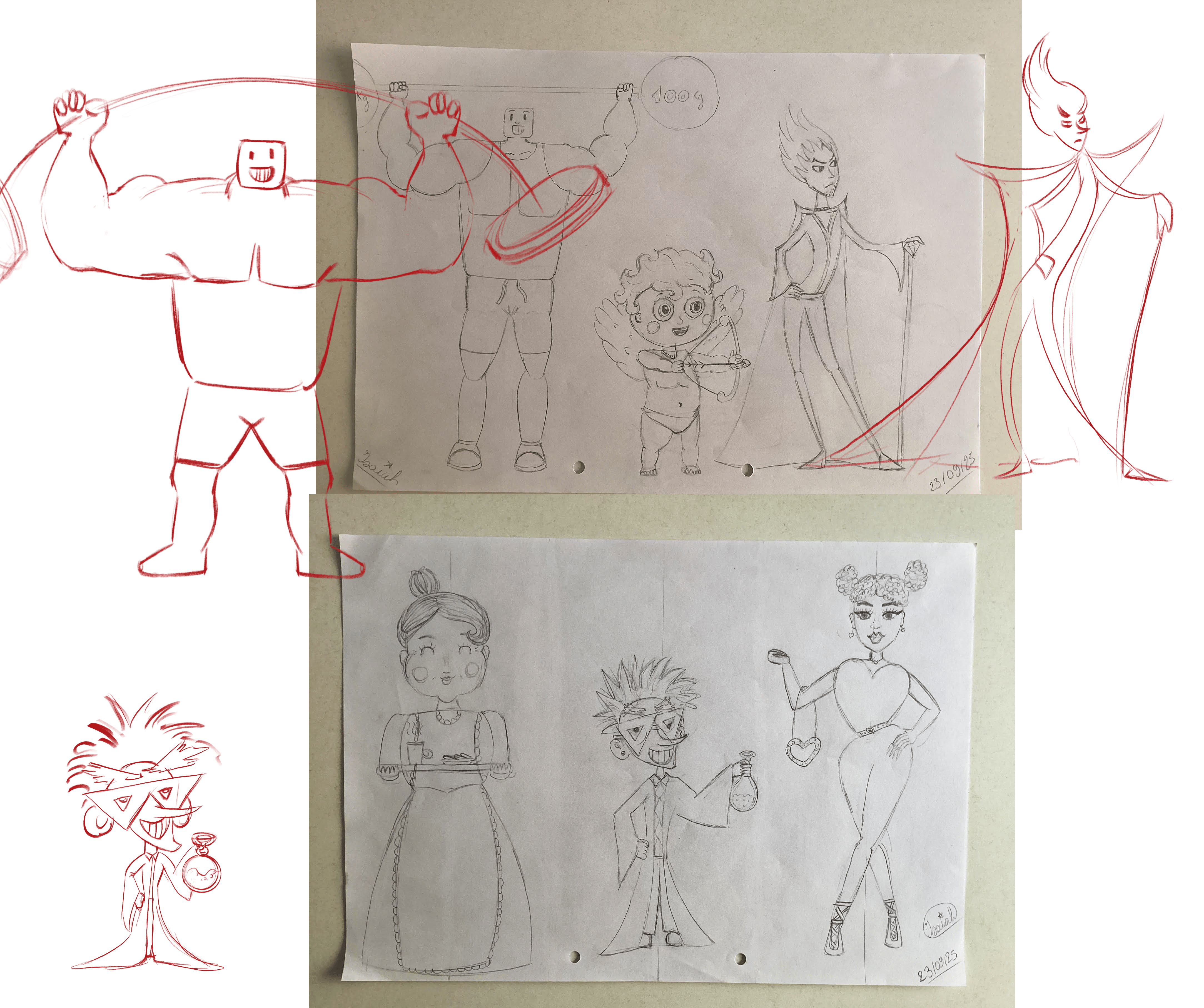 Le but de l'exercice était d'exagérer, alors n'hésite pas à pousser encore plus les formes et les proportions de tes personnages. Tu vas voir, le résultat sera encore plus percutant et amusant ! Continue comme ça, tu es sur la bonne voie :)