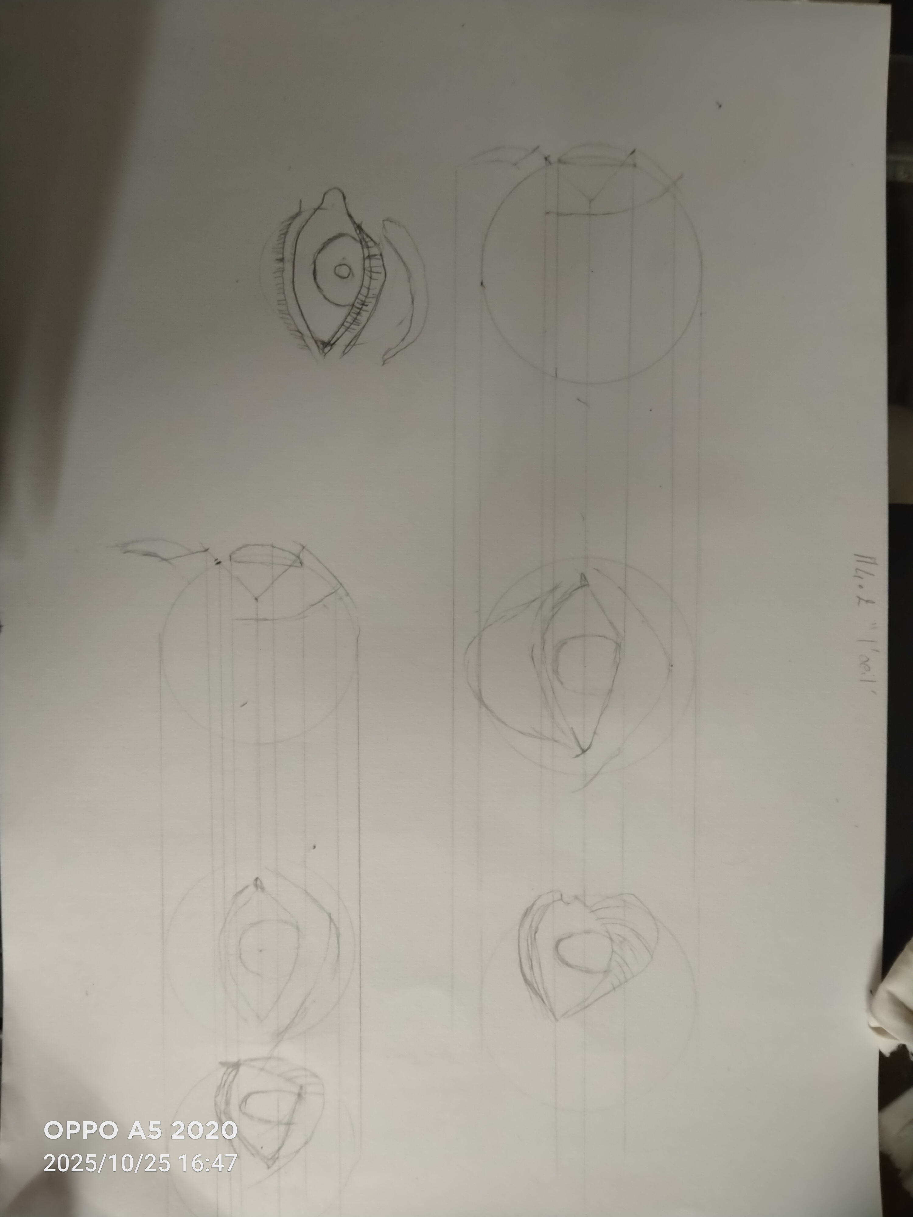 Es cierto en tus bocetos, ¡has asimilado el curso! Un pequeño consejo sobre la vista detallada en la parte inferior, los alumnos se afeitan un poco, para hacer un aspecto centrado hacia el espectador, ¡puedes colocar a los alumnos en el centro del globo ocular!