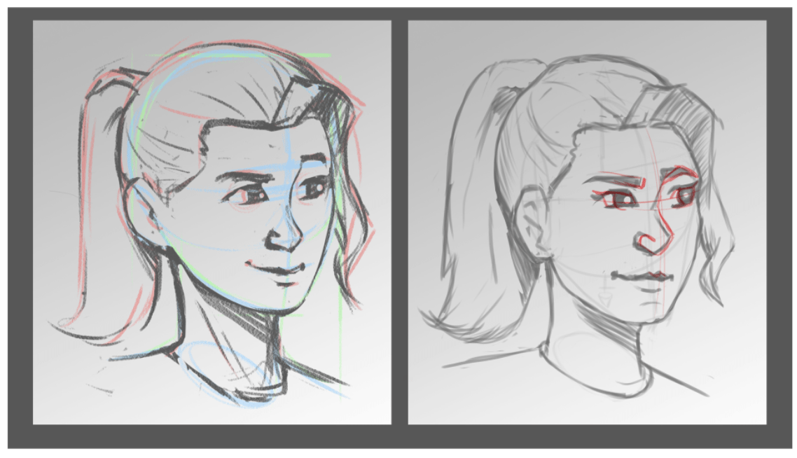 ¡Tu ejercicio es muy bonito! Solo hice algunos pequeños ajustes para nivelar los ojos, para que parecieran más alineados y para colocar la nariz correctamente en el centro relativo de la cara.