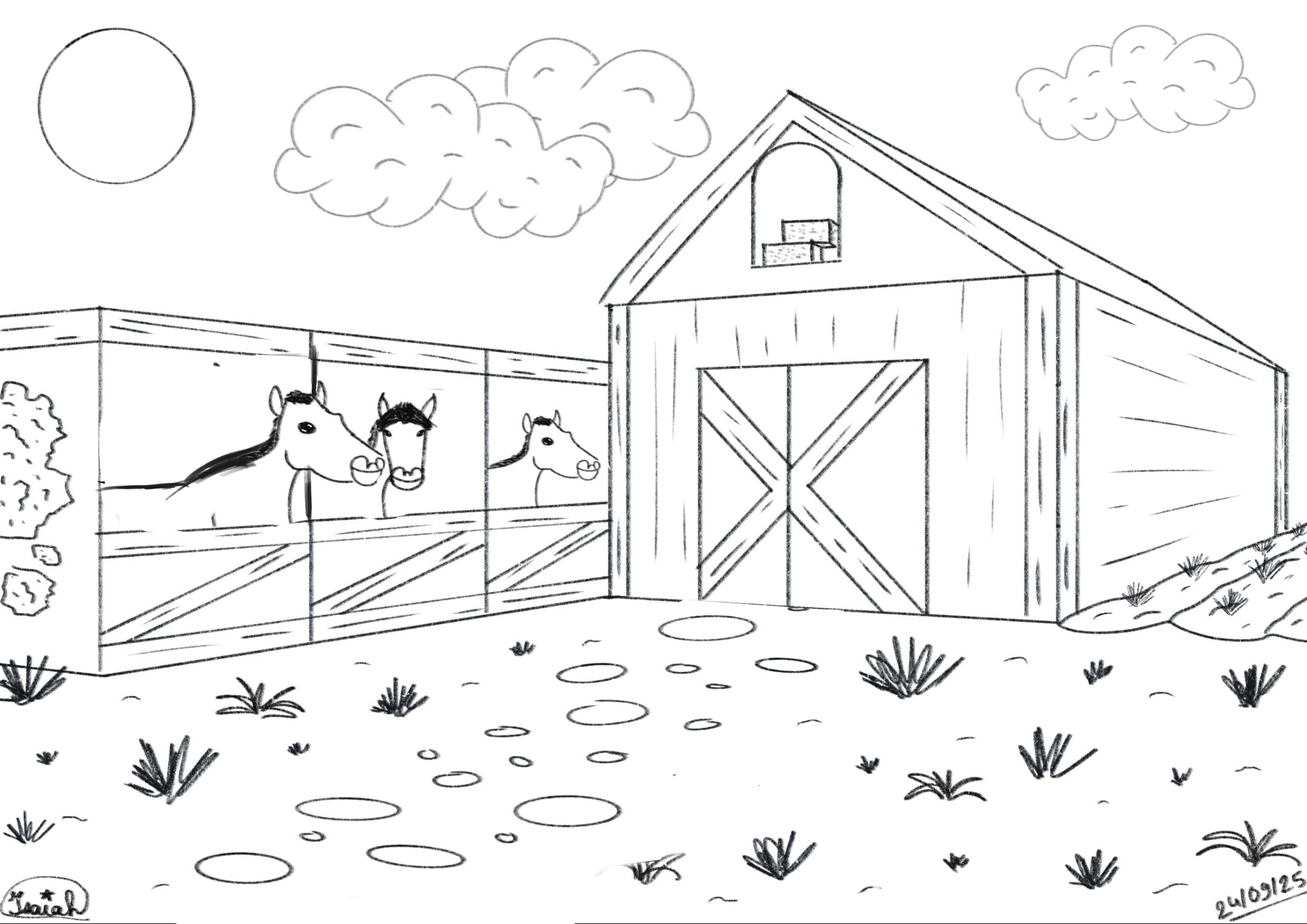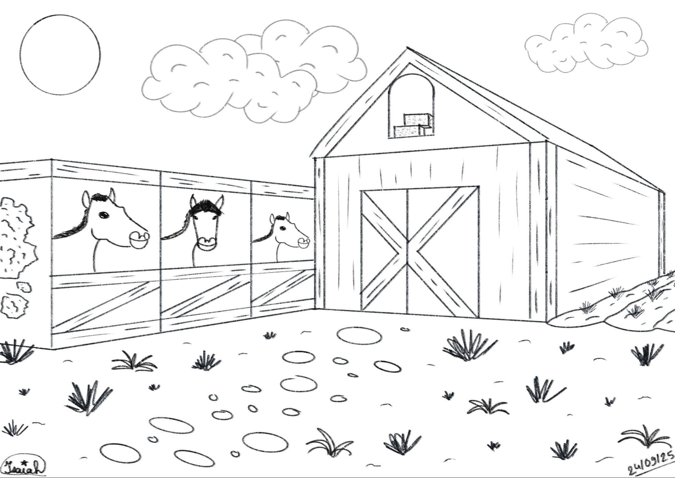 Ta perspective est réussit 👍Il y a juste le chemin de pierre qui était un peu hors perspective, elles âge ont tendance à remonter un peu trop sur la gauche. Ensuite un petit conseil, pour créer encore plus de volume n'hesite pas à superposer les éléments, par exemple j'ai fait dépasser la tête d'un des chevaux sur l'autre box et ça apporte directement de la profondeur, ça n'est pas grand chose mais tes dessin paraîtrons encore plus réaliste car moins statique :)