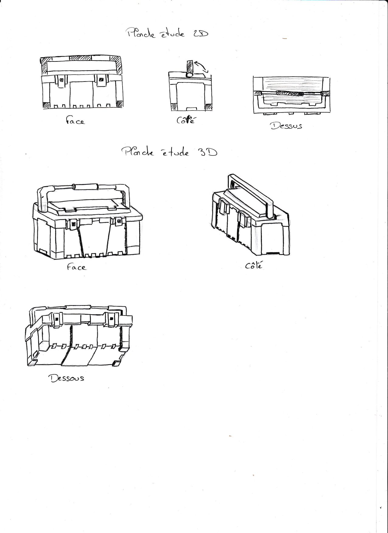 Voici ma planche d'étude très brouillonne sur la boite à outil !