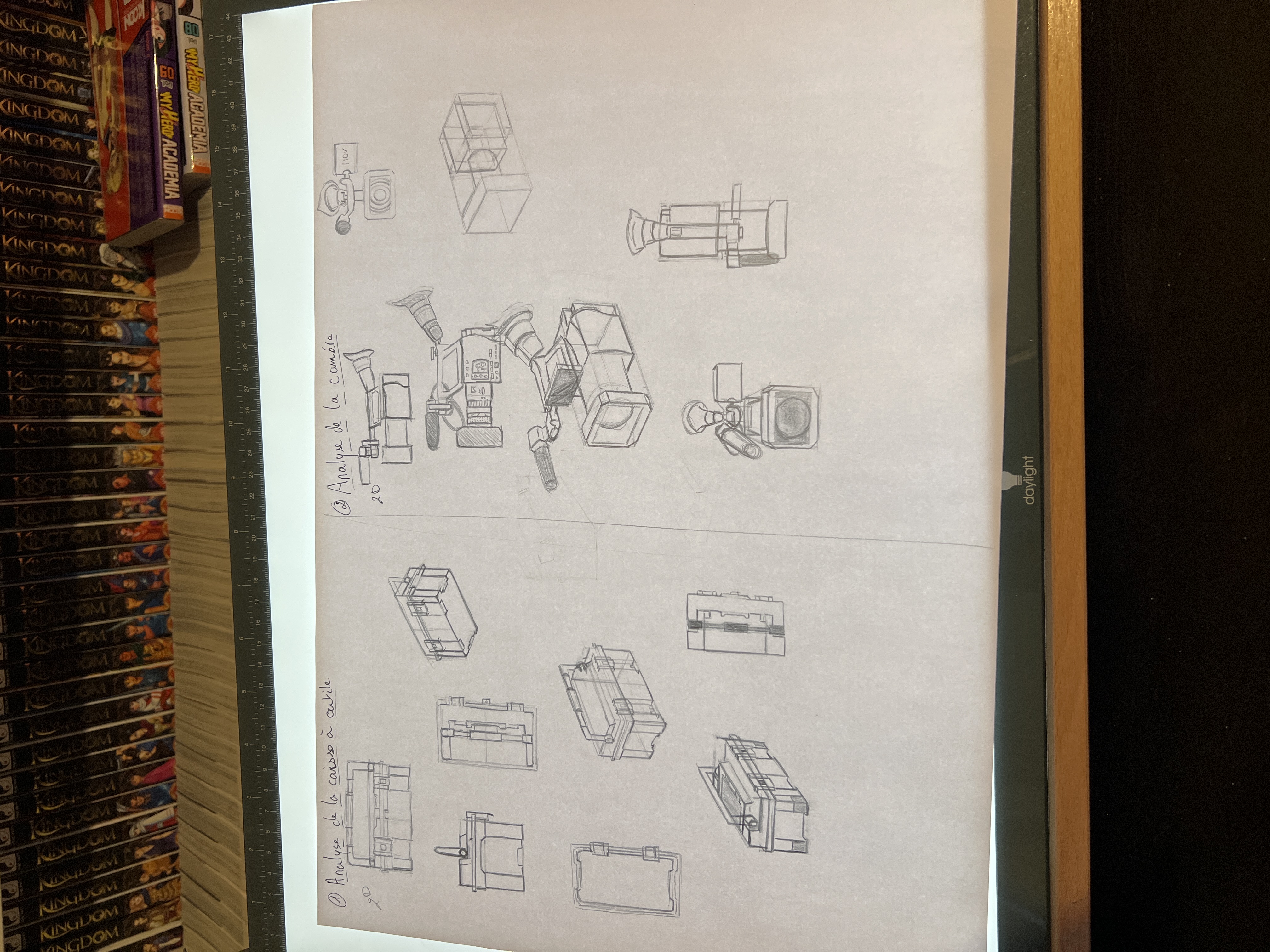 Bonjour, voici mes exercices sur la caméra et la mallette ; j'ai également fait l'étude sur une Ford Mustang de 1967 pour un dessin personnel. Merci d'avance pour votre aide précieuse cordialement 😊